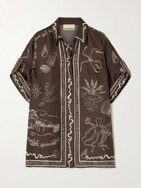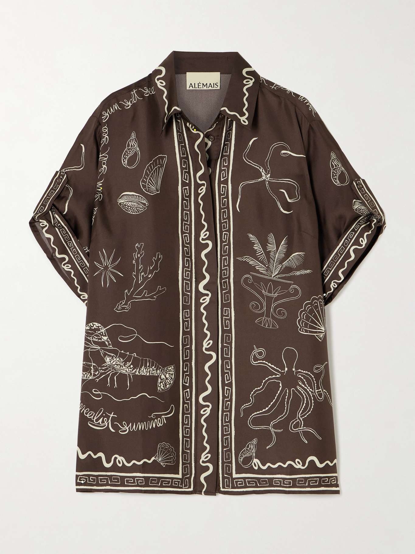EDITORS'NOTES Alemais' 'Sammy' shirt is designed in collaboration with illustrator Sam Pauletto – the print is inspired by the natural beauty of the Australian coastline. It's cut from silk-twill in a laid-back shape. Use the buttoned tabs to secure the rolled-up sleeves. SIZE & FIT Model measurements: - Fits true to size, take your normal size - Designed for a relaxed fit - Mid-weight, fluid, non-stretchy fabric - Model is 180cm/ 5'11" and is wearing a UK 8 - Bust: 80cm/ 31.5" - Waist: 65cm/ 25.5" - Hip: 89cm/ 35" DETAILS & CARE - Chocolate and off-white silk-twill - Partially concealed button fastenings through front - 100% silk - Dry clean