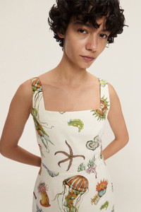 Product Details - Artwork in collaboration with Sam Pauletto - Relaxed mini dress silhouette - Square neckline - Seam zip on left side - Refer to size guide for garment measurements - Refer to flat lay product shots for true product colour representation - Composition: 100% European Flax Linen - For this piece we recommend a cold hand wash. Size & Fit Model height is 5'10"in/178cm, Bust: 76cm/30in, Waist: 58cm/23in, Hip: 89cm/35in, and wears a size AU6