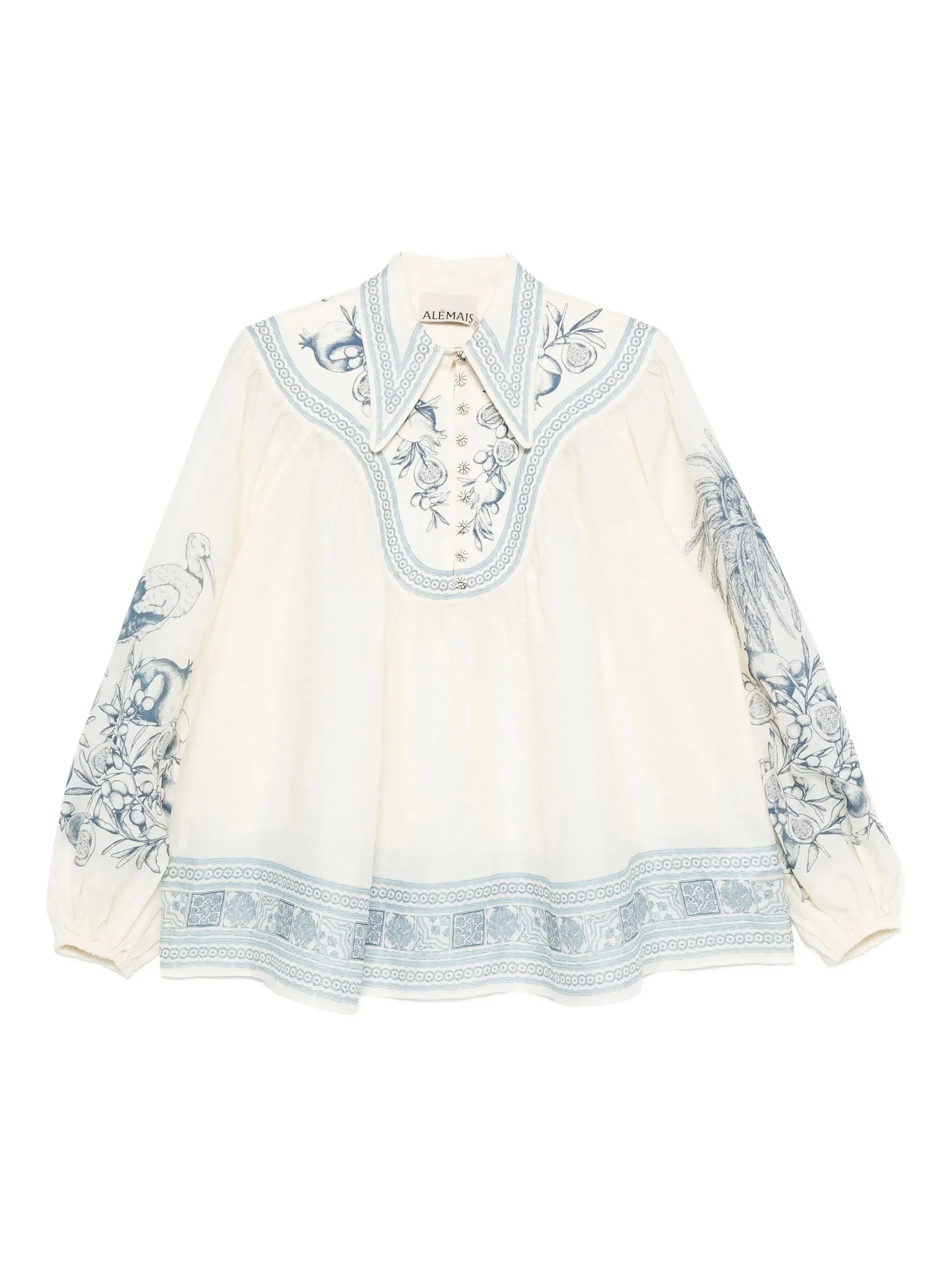 cream floral embroidery button fastening long sleeves collared border print - Designer Style ID: 6094T CREAM