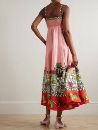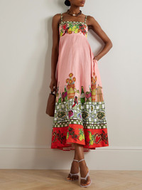 The playful print on Alemais' 'Contessa' midi dress is designed by artist Greg Sindel of Studio A – zoom in to spot the smartly dressed frog. It's made from breathable linen that's shirred through the back for comfort, and has adjustable self-tie straps. Size & Fit - Fits true to size, take your normal size - Designed to be fitted at the bust, loose at the waist and hip - Fully adjustable shoulder straps - Mid-weight, non-stretchy fabric - Model is 180cm/ 5'11" and is wearing a UK 8 Model measurements: - Bust: 80cm/ 31.5" - Waist: 65cm/ 25.5" - Hip: 89cm/ 35" Details & Care - Multicolored linen - Concealed hook and zip fastening at side - 100% linen; pocket lining: 100% cotton - Unlined - Hand wash