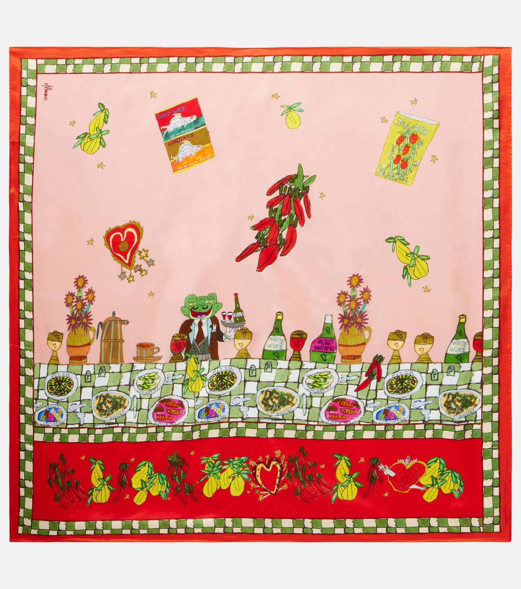 A contemporary brand with an artisanal focus, Alemais collaborates with graphic novelist Greg Sindel for an eclectic mix of prints. The Contessa scarf is crafted from lustrous silk and boasts a colorful motif. Product Details - Material: 100% silk - Care instructions: dry clean - Made in China - Designer color name: Multi - Item color: multicolor - Item number: P01071505 Size & Fit - Length 90cm-35.5" - Width 90cm-35.5"