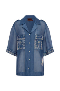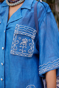 Product Details - Artwork in collaboration with Laurence Leenaert - Relaxed shirt silhouette - Artisanal beading - Camp collar - Beaded buttons - Patch pockets - Tabs at shoulder - Refer to size guide for garment measurements - Refer to flat lay product shots for true product colour representation - Composition: 87% Linen 13% Silk - For this piece we recommend delicate dry clean only. Size & Fit Model height is 5’10in/178cm, Bust: 75cm/29.5in, Waist: 63cm/25in, Hip: 83cm/32.5in, and wears a size AU6