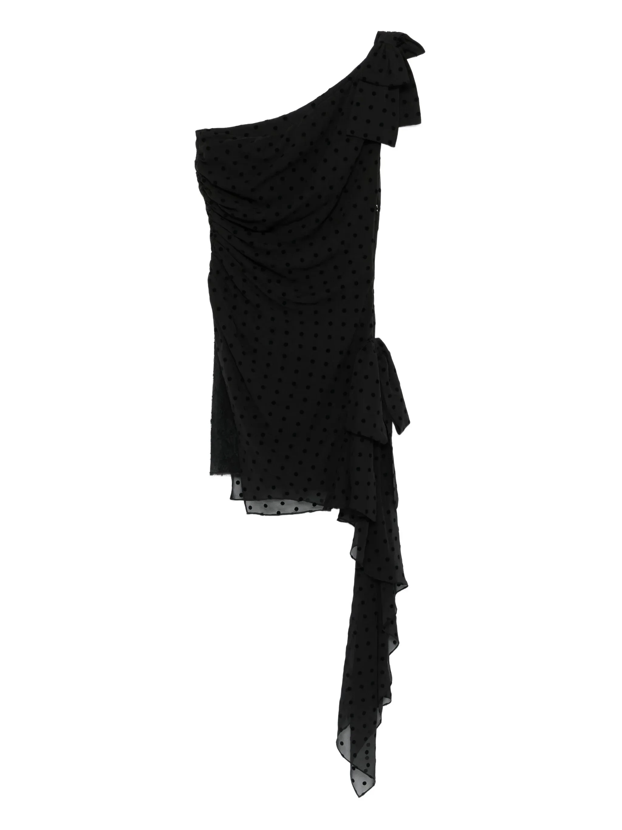 black polka-dot pattern one-shoulder design draped design asymmetrical hem ruffled detailing - Color: BLACK - Made in: Italy - Designer Style ID: FABX4149 F4309 0900 Composition and care Outer Composition Silk: 100.0%, Lining Composition Silk: 100.0%, Outer Composition Cotton: 65.0%, Outer Composition Polyamide: 35.0%