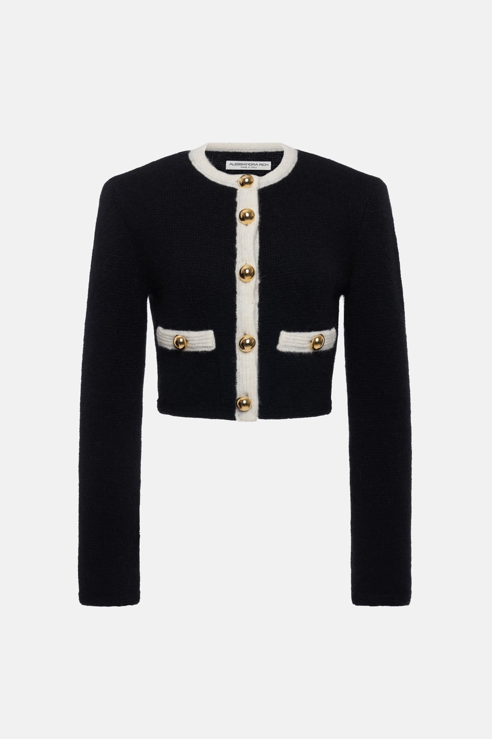 ALPACA KNITTED CROPPED CARDIGAN DETAILS (A)55%WP 10%WV 35%PA Style reference : FABX3960 K4437 2325 BLACK