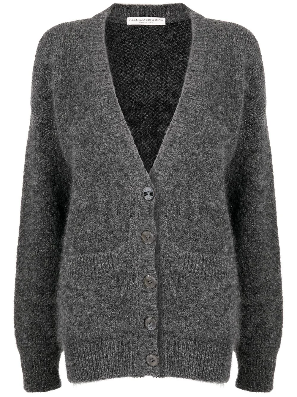 bear-intarsia knitted cardigan Highlights - Grey - Kid mohair blend - Intarsia knit - Bear motif - V-neck - Front button fastening - Long sleeves - Two side patch pockets - Straight hem Made in Italy Composition Kid Mohair 82%, Polyimide 16%, Elastane 2% SIZE & FIT Model measurements Height 5 ft 9 in(1.76 m) Bust/Chest 29.92 in(76 cm) Hips 35.82 in(91 cm) Waist 25.98 in(66 cm) FittingInformation Designed for an oversized fit, offering additional room throughout Constructed with additional length on the sleeve Made with a midweight knit, this piece offers some stretch This piece fits true to size – those with a petite frame may wish to take one size down Washing instructions Dry Clean Only