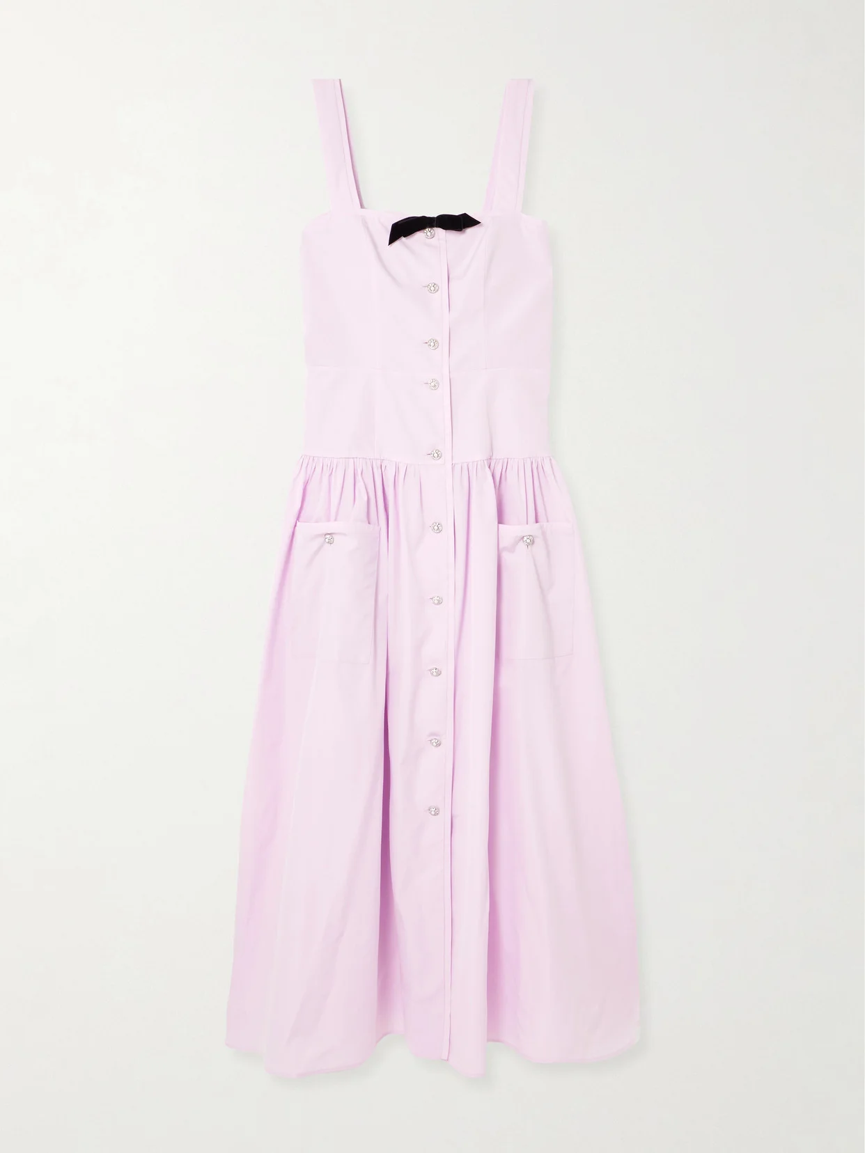 EXCLUSIVE AT NET-A-PORTER. Crystal-encrusted buttons bring a hint of sparkle to Alessandra Rich's dress. Made from cotton-poplin, it's detailed with a velvet bow at the neckline and gathered along the waist to create volume through the skirt. We love that it has pockets, too - pop your lipstick in one so you're always photo-ready. Large to size. See Size & Fit notes.