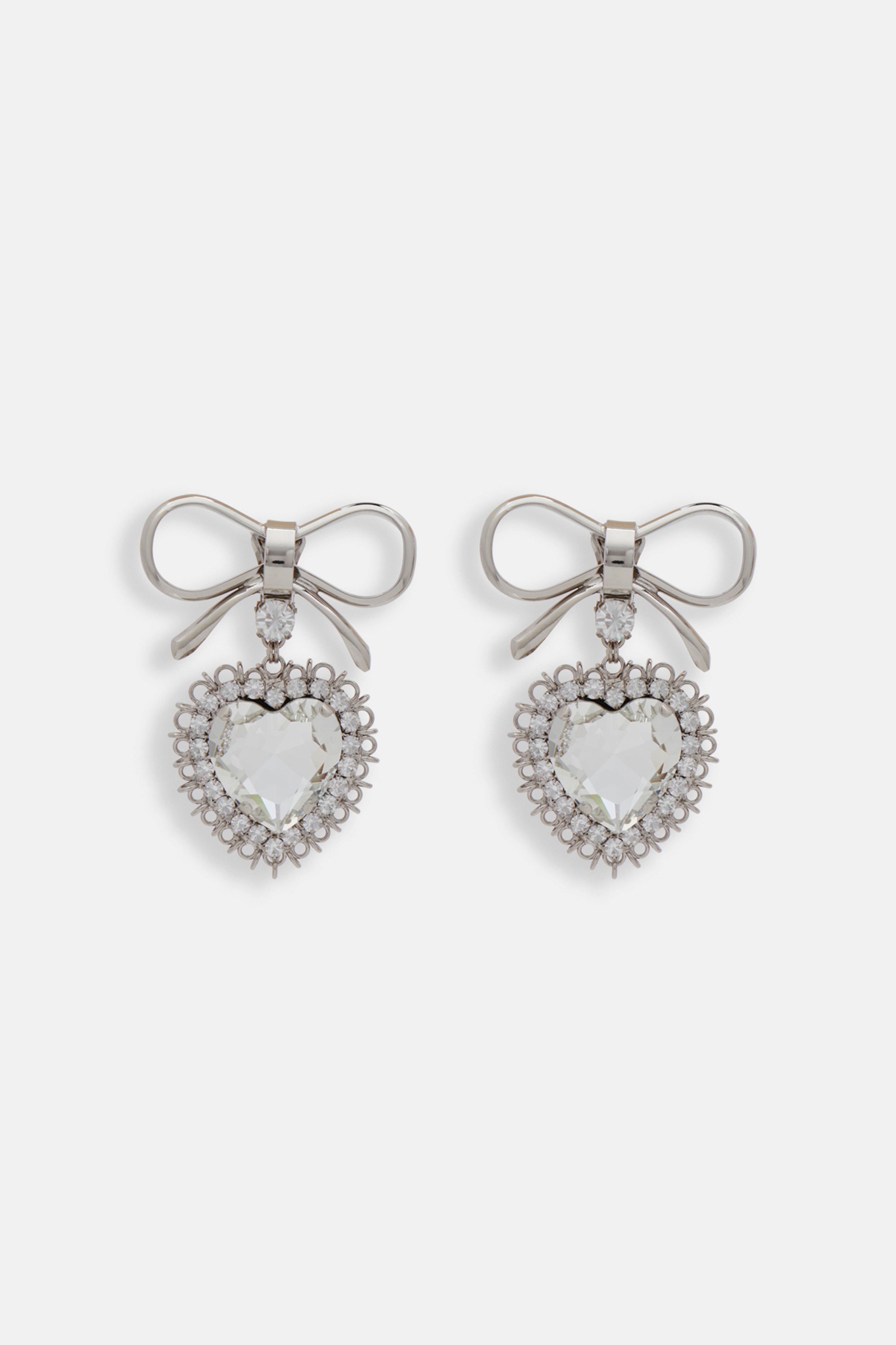 Metal bow earrings with crystal pendant heart Materials 40% hypoallergenic toned brass 60% glass Colour: cry-silver Made in Italy Product code: FABA3257 J0024 0001