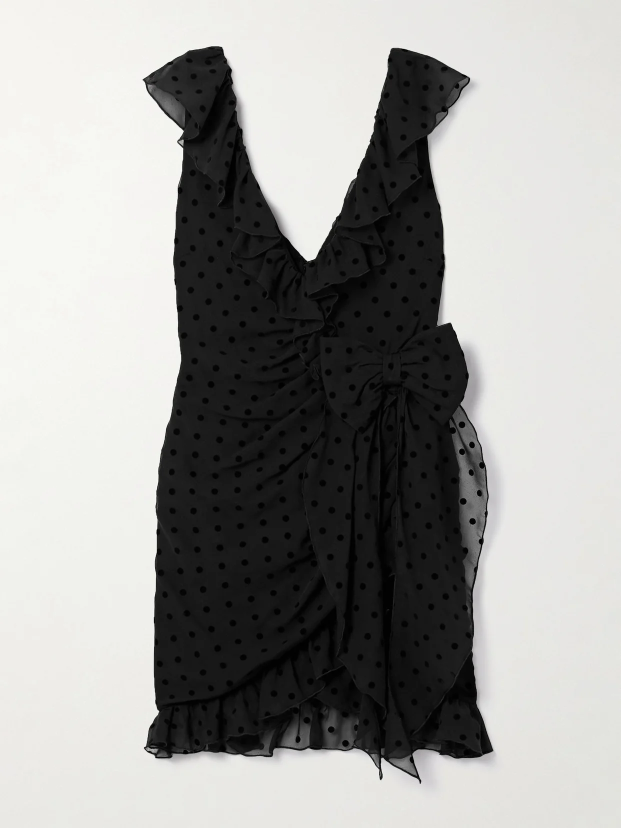 EXCLUSIVE AT NET-A-PORTER. Our capsule collection with Alessandra Rich embodies the brand's signature retro romance. Made from silk-chiffon flocked with polka-dots, this gathered dress is accented with a bow and traced with fluttery ruffles along the V-neckline and hem.