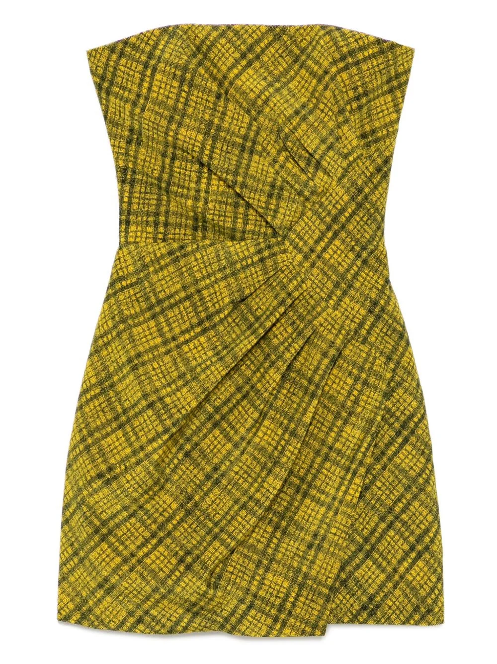 check dress Highlights - Yellow - Concealed rear hook and zip fastening - Strapless Made in Italy Composition Silk 100% SIZE & FIT Model measurements Height 5 ft 10 in(1.77 m) Bust/Chest 30.7 in(78 cm) Hips 35.82 in(91 cm) Waist 21.25 in(54 cm) FittingInformation Designed for a slim fit that sits just away from the body offering a close yet comfortable fit Made from a midweight non-stretch fabric Washing instructions Dry Clean Only