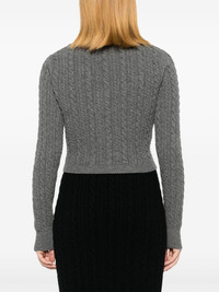 knitted wool cardigan Highlights - Dark grey - Wool - Knitted construction - Cable knit - Round neck - Long sleeves - Ribbed cuffs and hem - Straight hem - Cropped - Front button fastening Made in Italy Composition Wool 100% SIZE & FIT Model measurements Height 5 ft 10 in(1.77 m) Bust/Chest 33.85 in(86 cm) Hips 37 in(94 cm) Waist 26.37 in(67 cm) Measurement SLEEVE LENGTH 24.8 in(63 cm) LENGTH 16.92 in(43 cm) WAIST 23.62 in(60 cm) FittingInformation Designed for a slim fit that sits just away from the body offering a close yet comfortable fit Cropped in length Made with a midweight knit, this piece offers some stretch This piece fits true to size – take your usual size