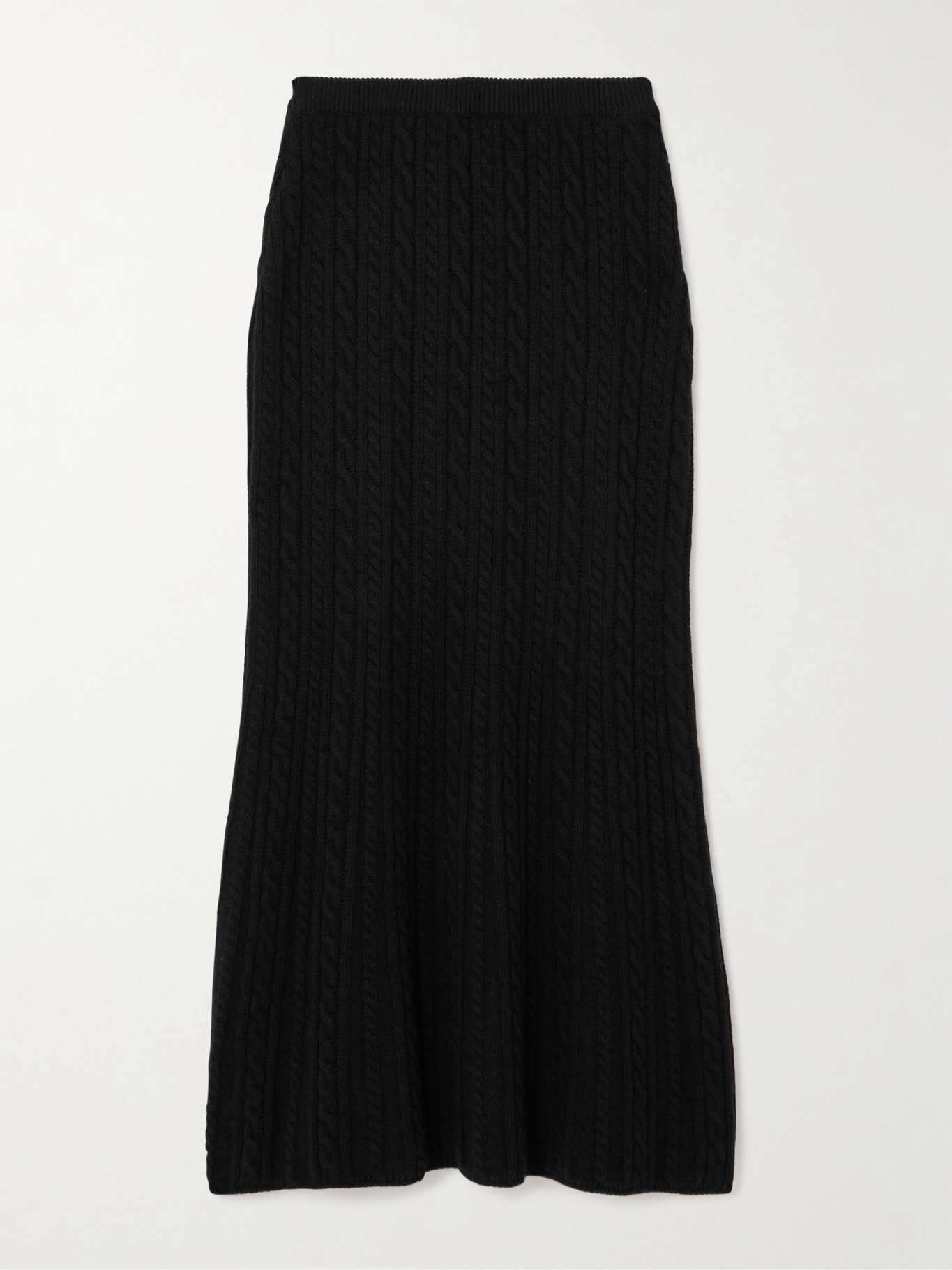 EDITORS'NOTES Alessandra Rich's matching set nods to the label's vintage glamour. This midi skirt is cable-knitted from soft wool and hugs your figure before gently flaring out at the hem. Wear yours as a coord to get the full effect. SIZE & FIT Model measurements: - Fits true to size, take your normal size - Midi-length, designed to be worn at the waist - Elasticated at the waist for a flexible fit - Mid-weight knit - Model is 177cm/ 5'10" and is wearing an IT 40 - Bust: 79cm/ 31" - Waist: 61cm/ 24" - Hip: 89cm/ 35" DETAILS & CARE - Black wool - Slips on - 100% wool - Dry clean