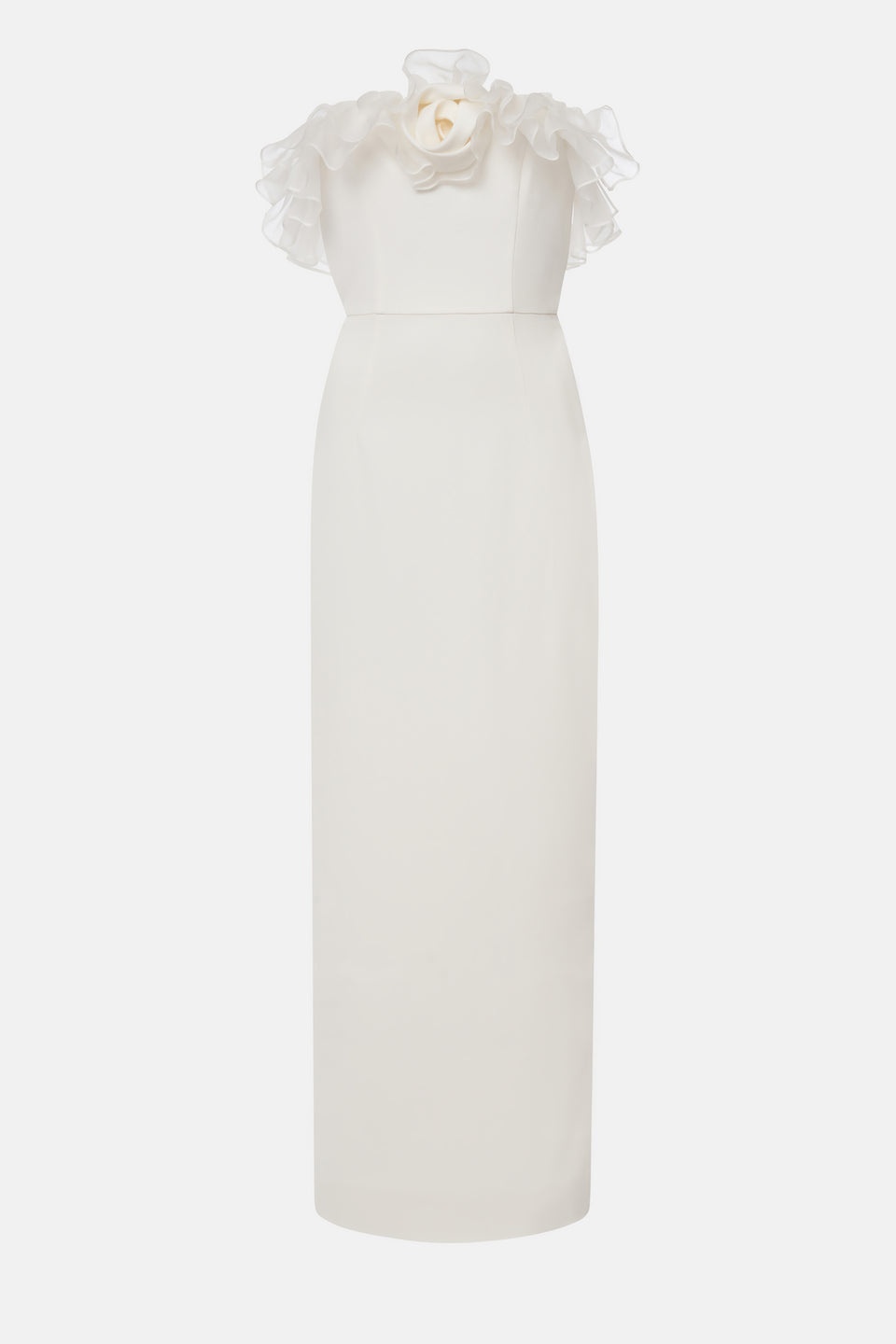 CADY BUSTIER DRESS WITH ORGANZA RUFFLE DETAILS