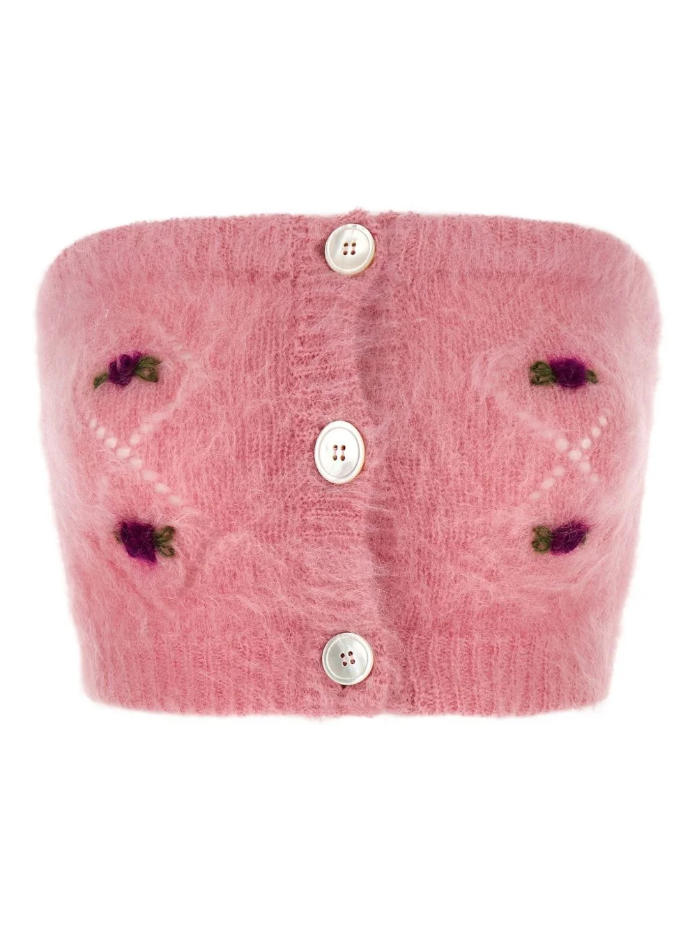 embroidered button top Highlights - Pink - Mohair wool - Button closure - Floral embroidery - Sleeveless - Carded texture Made in Italy Composition Kid Mohair 50%, Polyamide 32%, Wool 18% Washing instructions Read Manufacturer Guidelines