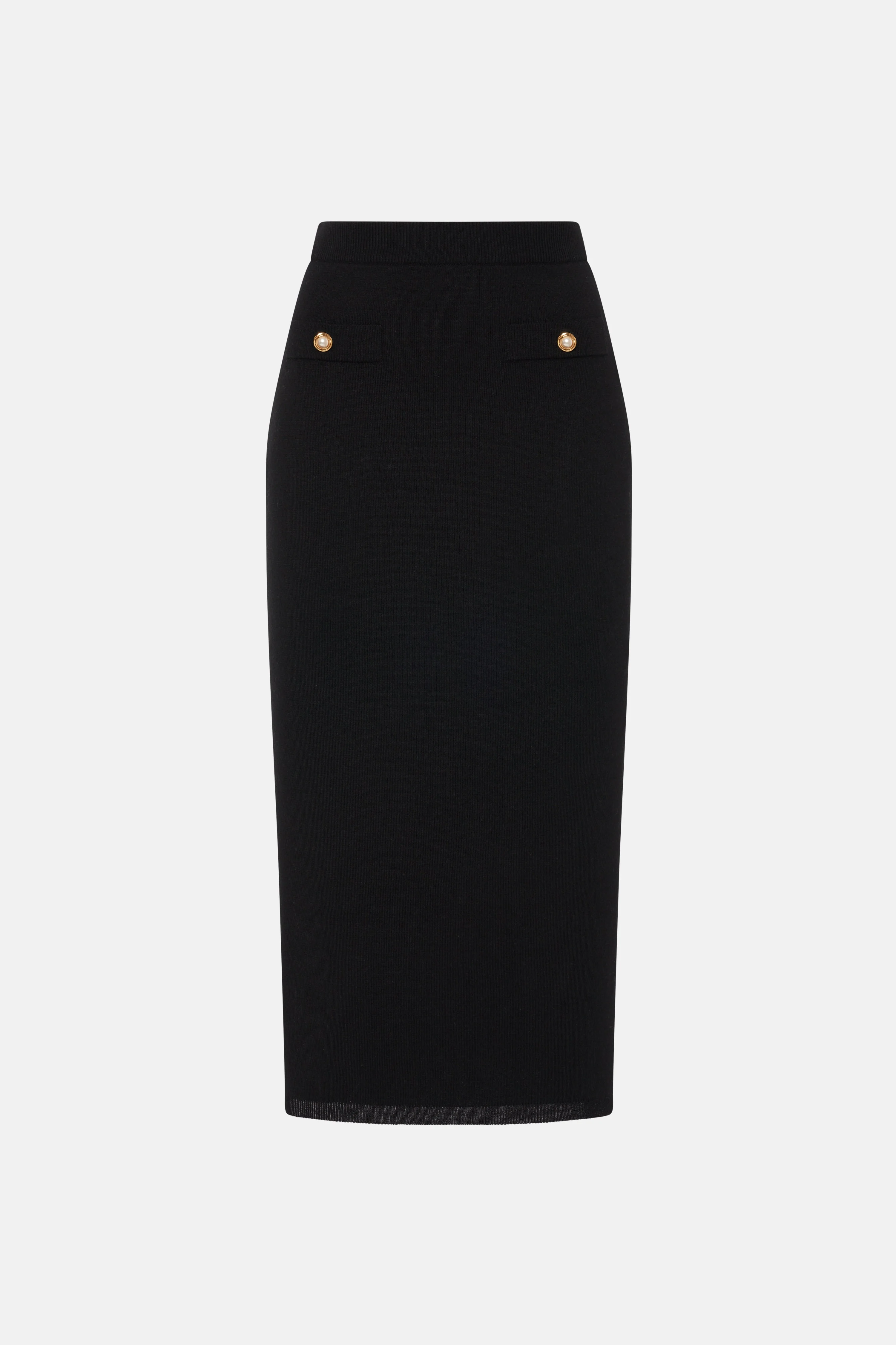 Cotton and cashmere blend knit midi skirt Composition 85% cotton 15% cashmere Colour: black Made in Italy Product code: FABX4172 K4601 0056