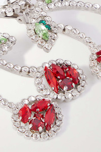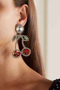 EDITORS'NOTES Alessandra Rich's Fall '22 collection has a playful side, highlighted by the colorful fruit motifs that decorate its pieces. Shaped like cherries, these clip-on earrings are made from silver-tone metal and adorned with shimmering crystals. SIZE & FIT This item’s measurements are: - Length: - 8cm - / 3.1in - Width: - 4.5cm - / 1.8in DETAILS & CARE - Clip fastening