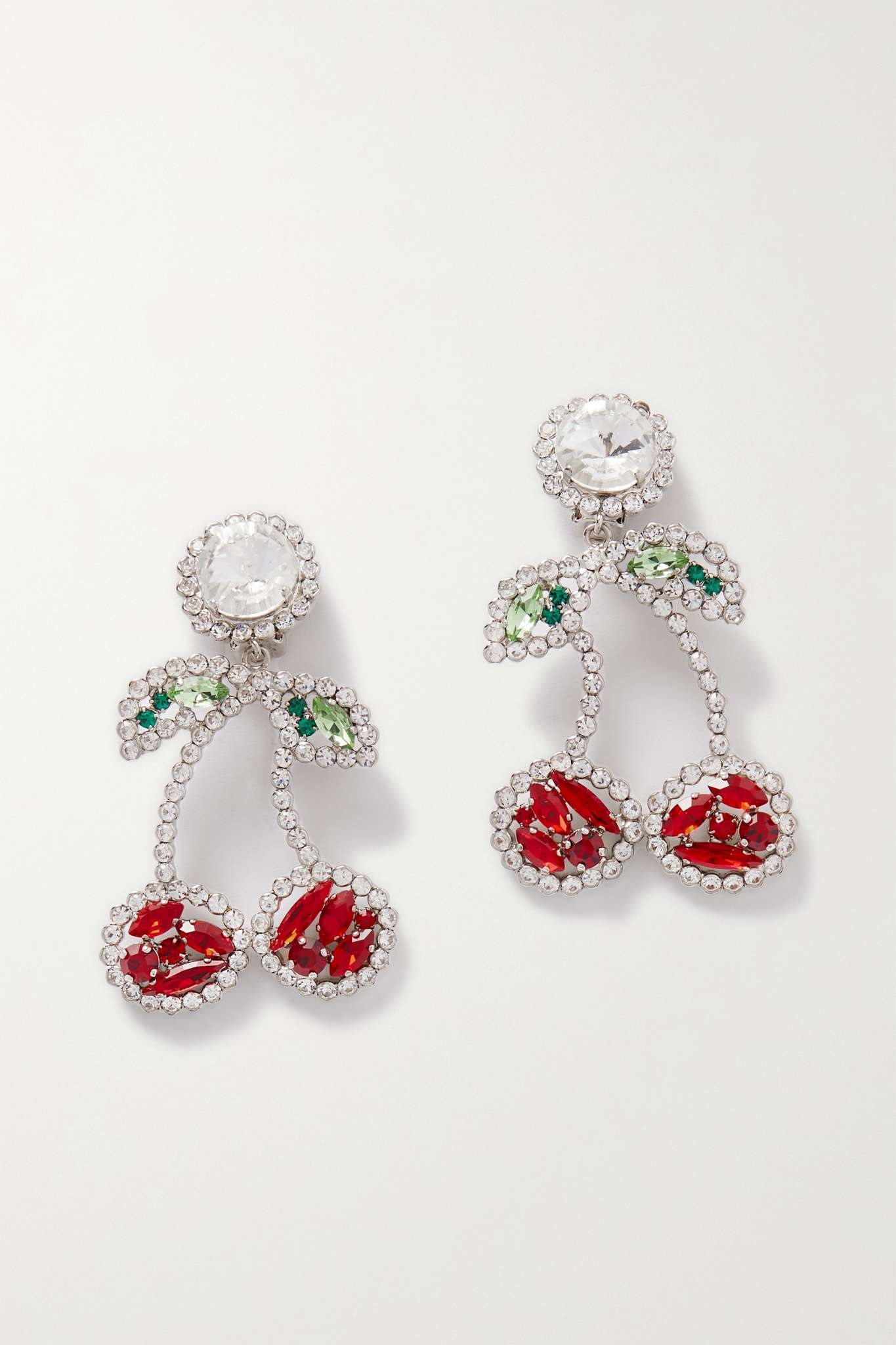 Cherry silver-tone crystal clip earrings