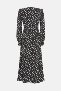 CLOVER PRINT SILK DRAPED DRESS WITH JWL BUTTONS