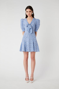 CLOVER PRINT SILK MINI DRESS WITH BOW DETAILS (A)100%SE LINING:(A)100%CU (B)100%PA Style reference : FABX3861 F4370 1674 LIGHT BLUE