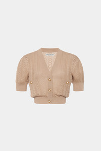 Cotton and cashmere blend lace knit crop cardigan Composition 85% cotton 15% cashmere Colour: sand Made in Italy Product code: FABX4170 K4601 0066