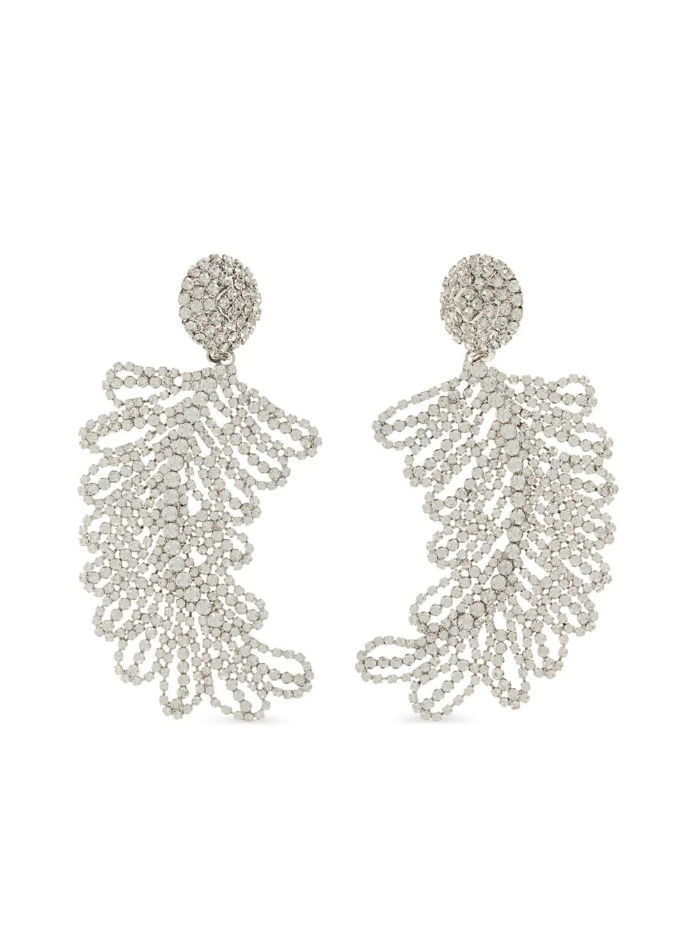 crystal-embellished feather earrings Highlights - Brass construction - Silver - Crystal embellishment - Feather design - Post fastening - These earrings come as a pair. Imported