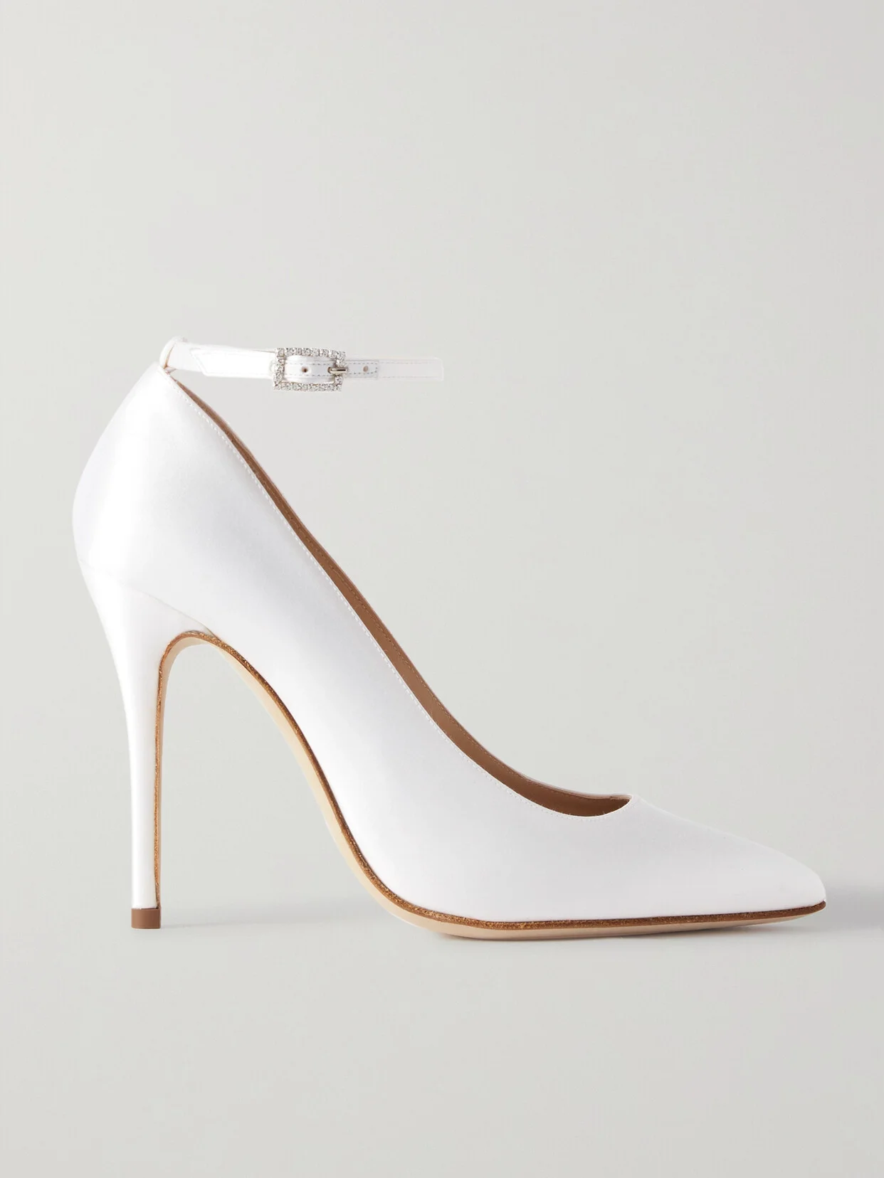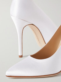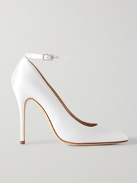 EXCLUSIVE AT NET-A-PORTER. You may already have your eye on Alessandra Rich's dresses for your big day, but these pumps are worthy of a spot in your trousseau, too. Designed with elegant pointed toes and 100mm heels, they are completely wrapped in white silk-satin. The crystal buckles will look so pretty peeking out beneath your gown.