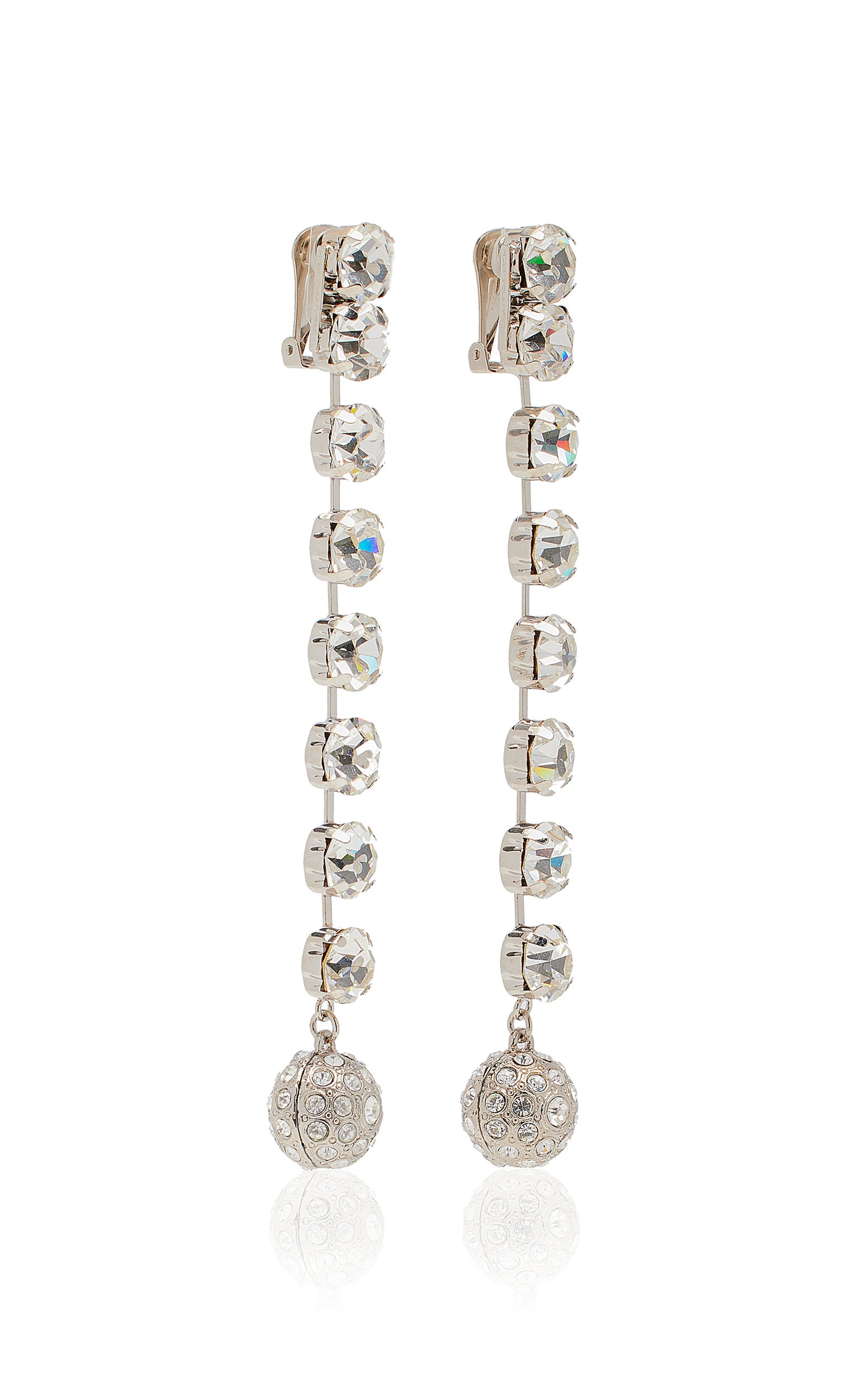 No Alessandra Rich look is complete without at least one statement jewel — it takes her party-ready pieces over the top (in the best way). Cast from hypoallergenic silver-tone brass, these drop earrings feature tiers of square-cut glass crystals tipped with a spherical drop. PRODUCT DETAILS - Clip-on fastening - Composition: 80% glass, 20% hypoallergenic silver-tone brass - Made in Italy