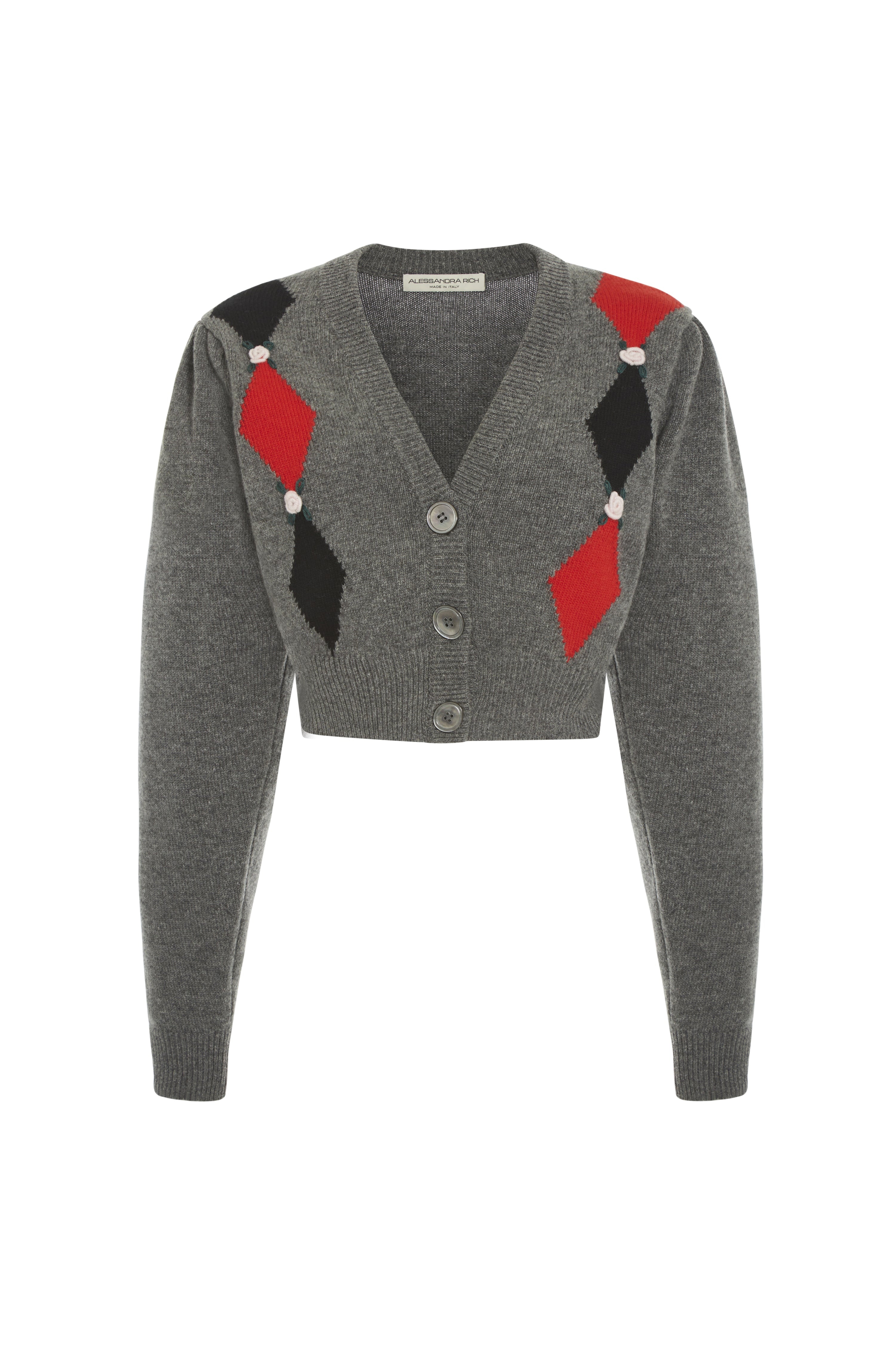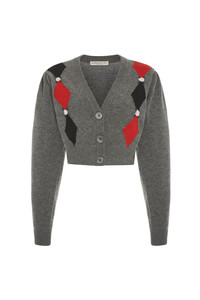DIAMOND KNITTED CARDIGAN WITH EMBROIDERY
