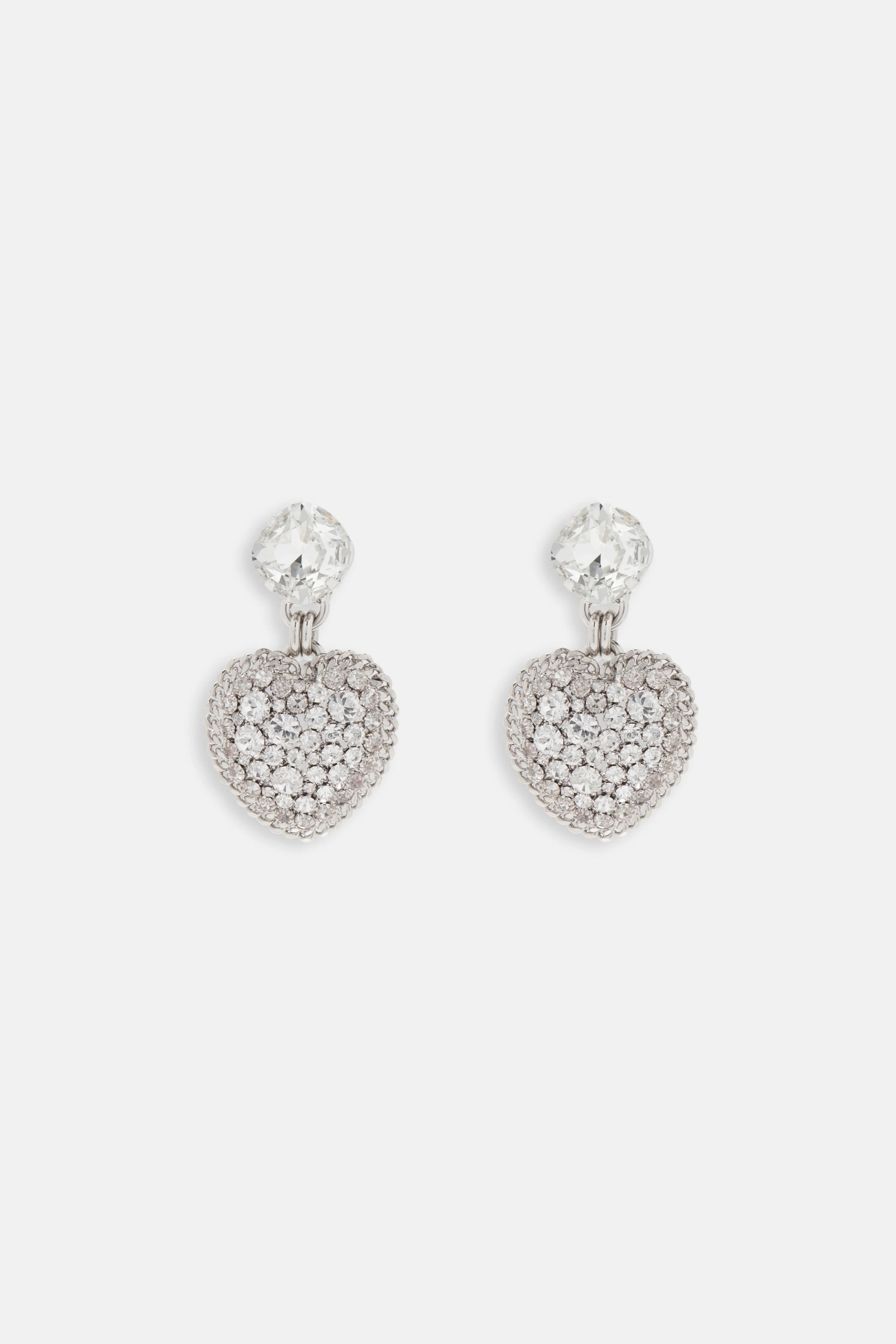Crystal earrings with pendant heart Materials 40% hypoallergenic toned brass 60% glass Colour: cry-silver Made in Italy Product code: FABA3302 J0024 0001