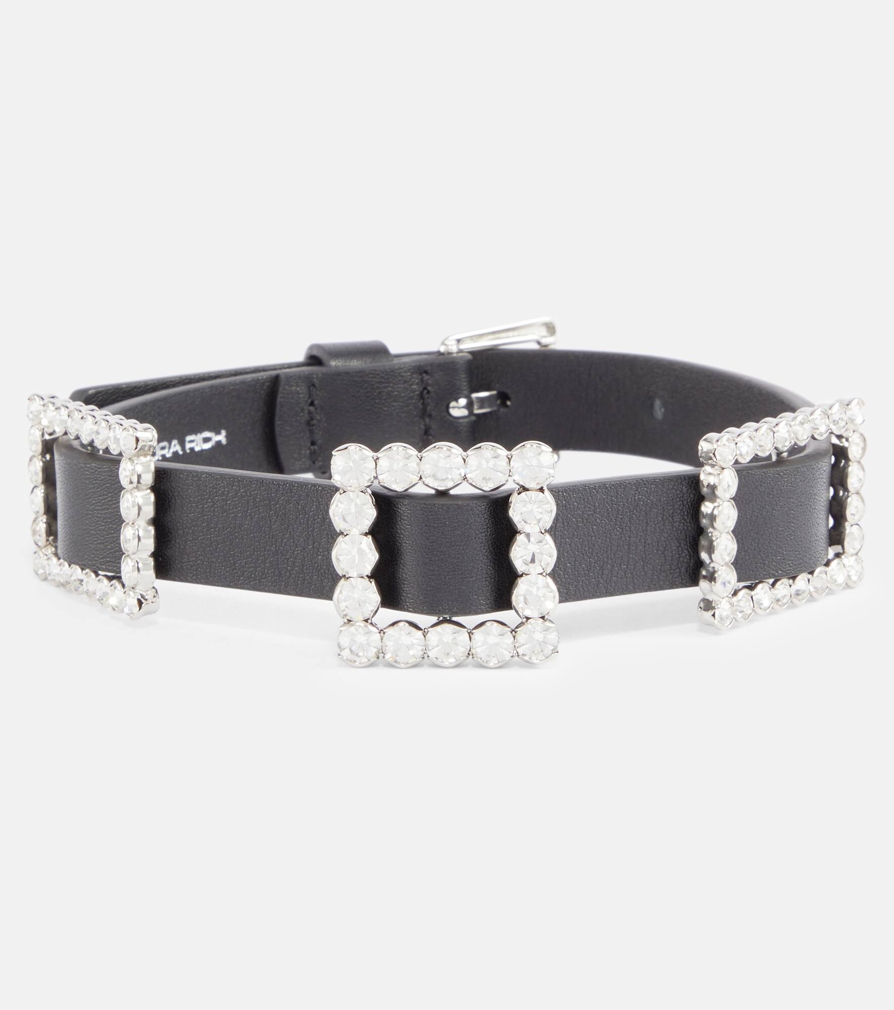 Alessandra Rich's modern treasures will add a subversive essence to your jewelry edit. This calfskin choker necklace is detailed with embellished buckled detailing and has a buckle fastening. Product Details - Made in Italy - Comes with dust bag - Closure: buckle fastening - Material: leather - Comes with a box - Designer color name: Black-Cry - Item number: P00806067 Size & Fit - Length when open 38cm-15" - Max. width 3,2cm-1.5"