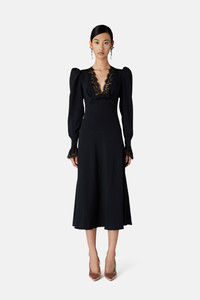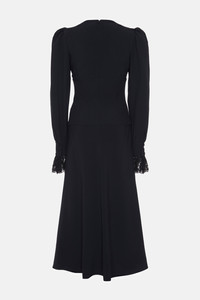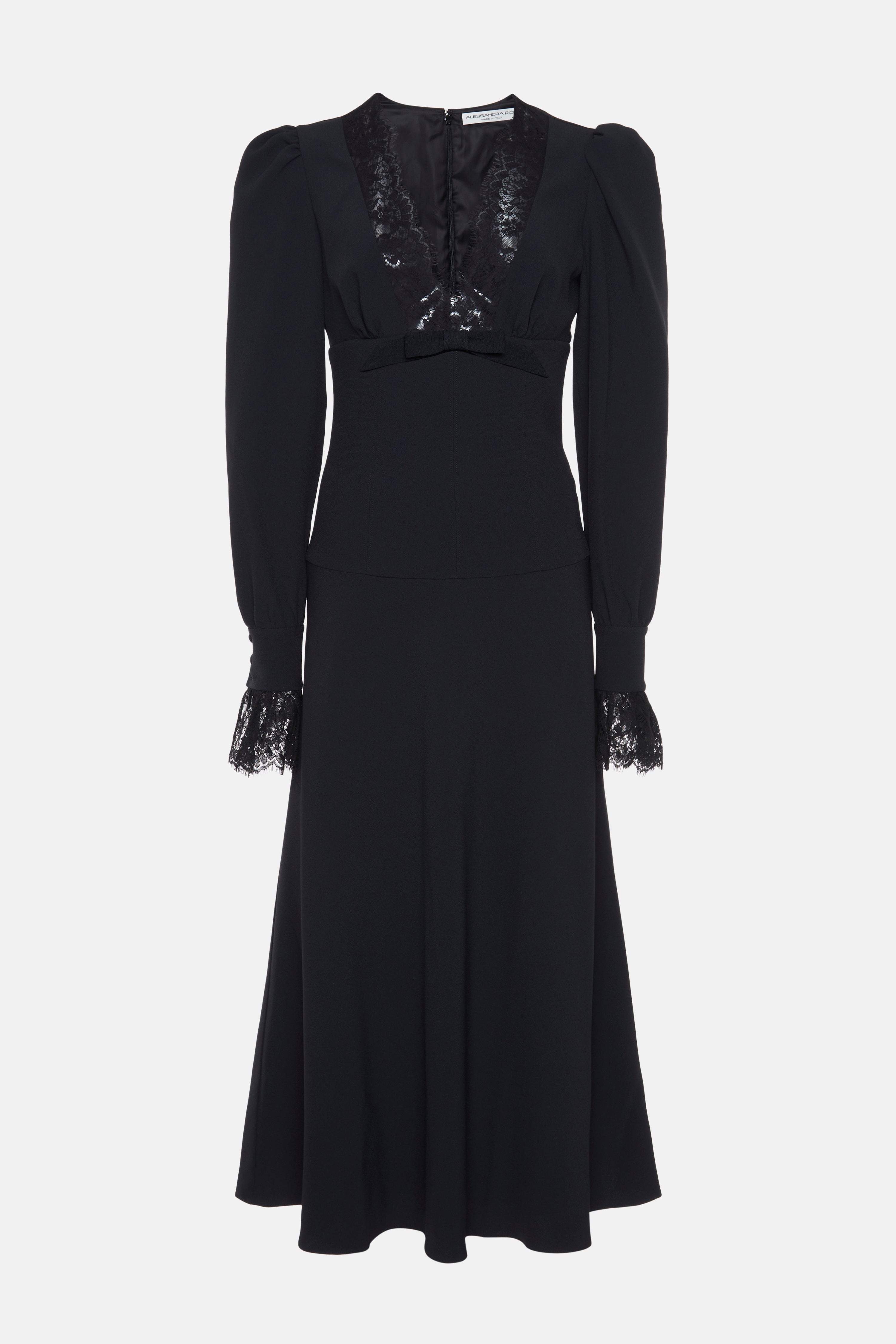 Envers satin v-neck dress with lace trim Composition 74% acrylic 26% viscose Lace: 85% cotton 15% polyamide Lining: 100% cupro Colour: black Made in Italy Product code: FABX3985 F4504 0900
