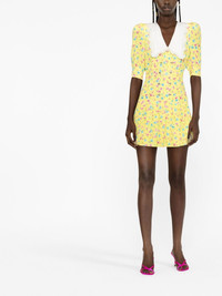 floral-print mini dress multicolour silk/cotton blend all-over floral print V-neck oversized pointed collar double-breasted button fastening pleated skirt above-knee length Made in Italy Composition Outer: Silk 100%, Cotton 89%, Polyester 11% Lining: Cupro 100% SIZE & FIT Model measurements Height 5 ft 10 in(1.79 m) Bust/Chest 31.1 in(79 cm) Hips 35.03 in(89 cm) Waist 24.01 in(61 cm) Measurement CHEST 32.28 in(82 cm) HIPS 35.43 in(90 cm) LENGTH 31.88 in(81 cm) WAIST 26.77 in(68 cm) FittingInformation This piece fits true to size. We recommend you get your regular size Designed for a close fit at the bust and waist, but loose at the hip Made with a mid-weight non-stretch fabric Washing instructions Dry Clean Only