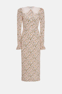 FLOWER PRINT SILK DRESS WITH COLLAR AND BUTTONS
