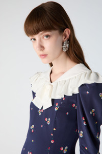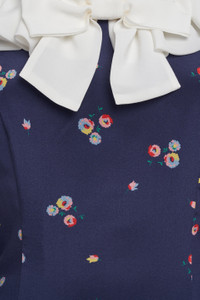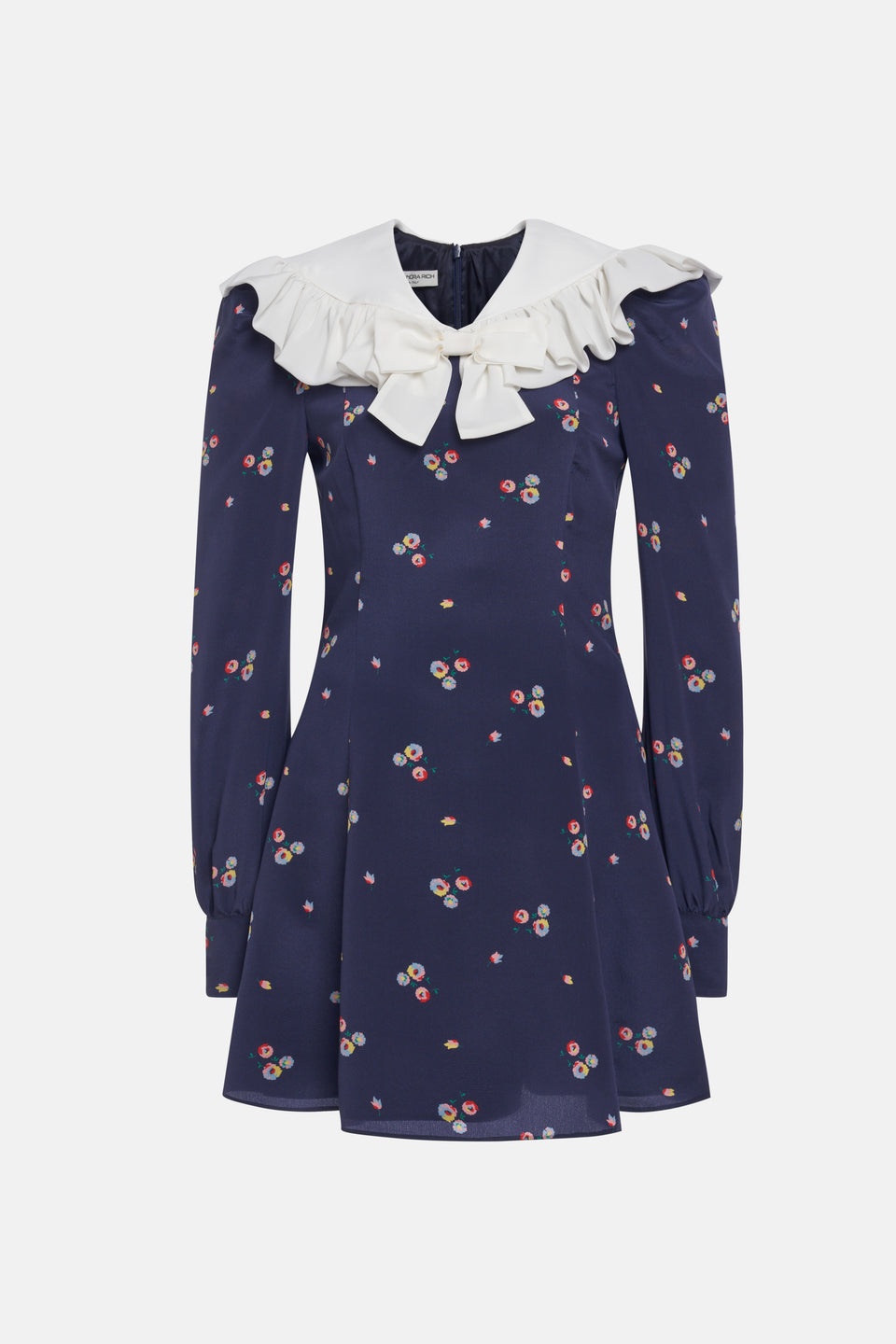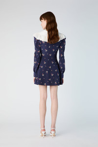 FLOWER PRINT SILK MINI DRESS WITH COLLAR DETAILS (A)100%SE (B)88%CO 12%SE (C)100%SE LINING:(A)100%CU (B)100%PA Style reference : FABX3946 F4423 1944 NAVY BLUE-MULTI