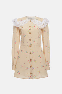 FLOWER PRINT SILK MINI DRESS WITH JWL BUTTONS