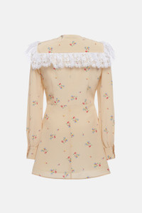 FLOWER PRINT SILK MINI DRESS WITH JWL BUTTONS DETAILS (A)100%SE (B)85%CO 15%PA LINING:(A)100%CU (B)100%PA Style reference : FABX3940 F4423 1622 CREAM-MULTI