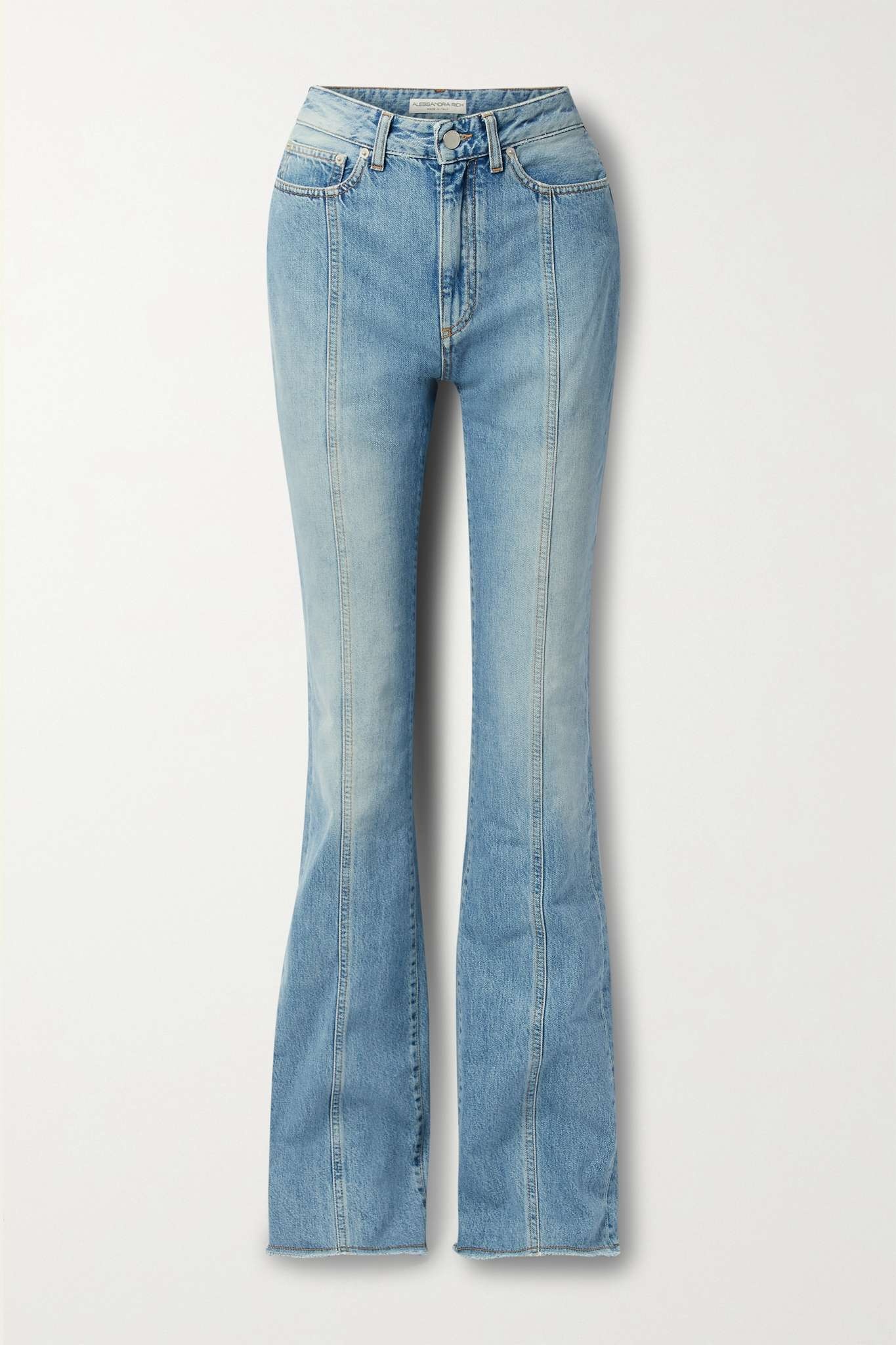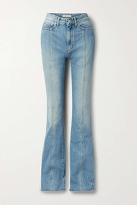 EDITORS'NOTES Alessandra Rich's jeans are designed in a flared silhouette that gives them a distinctly '70s feel. Cut from light-blue denim, they're faded for a vintage look and embroidered with eye-catching brand monikers at the back pocket. Style yours with a tucked-in tank and ankle boots. SIZE & FIT - Fits true to size, take your normal size - High-rise, cut for a for a slim fit with a flared hem - Mid-weight, slightly stretchy fabric - Size 26 jeans have an inside leg of 37”/ 93 cm - Model is 175cm/ 5'9" and is wearing a size 26 DETAILS & CARE - Light-blue denim - Button and concealed zip fastening at front - 100% cotton; lining 65% polyester, 35% cotton - Hand wash or dry clean
