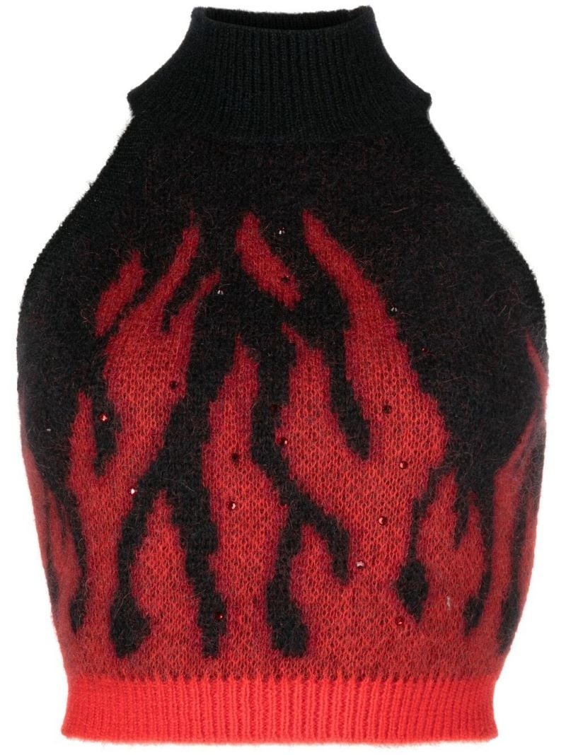intarsia-knit sleeveless cropped jumper