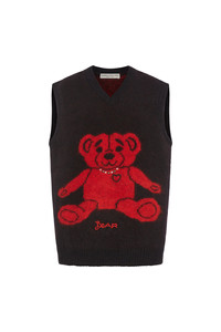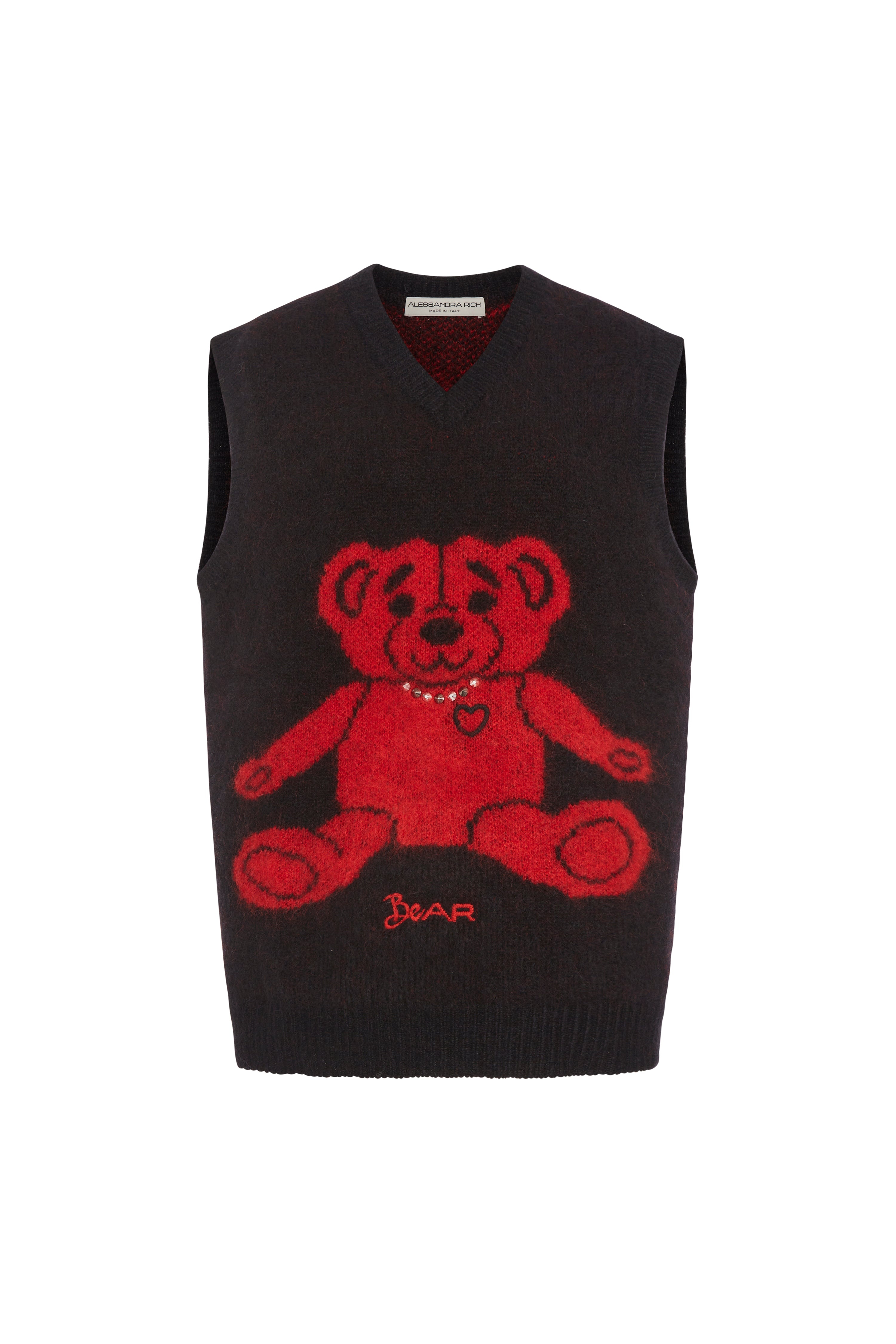 Black knitted mohair vest with red bear and hotfix DETAILS (A)82%virgin wool 16%polyamid 2%elastane pullover vest with hotfix Style reference: FAB3476-K4054-9008 Made in Italy