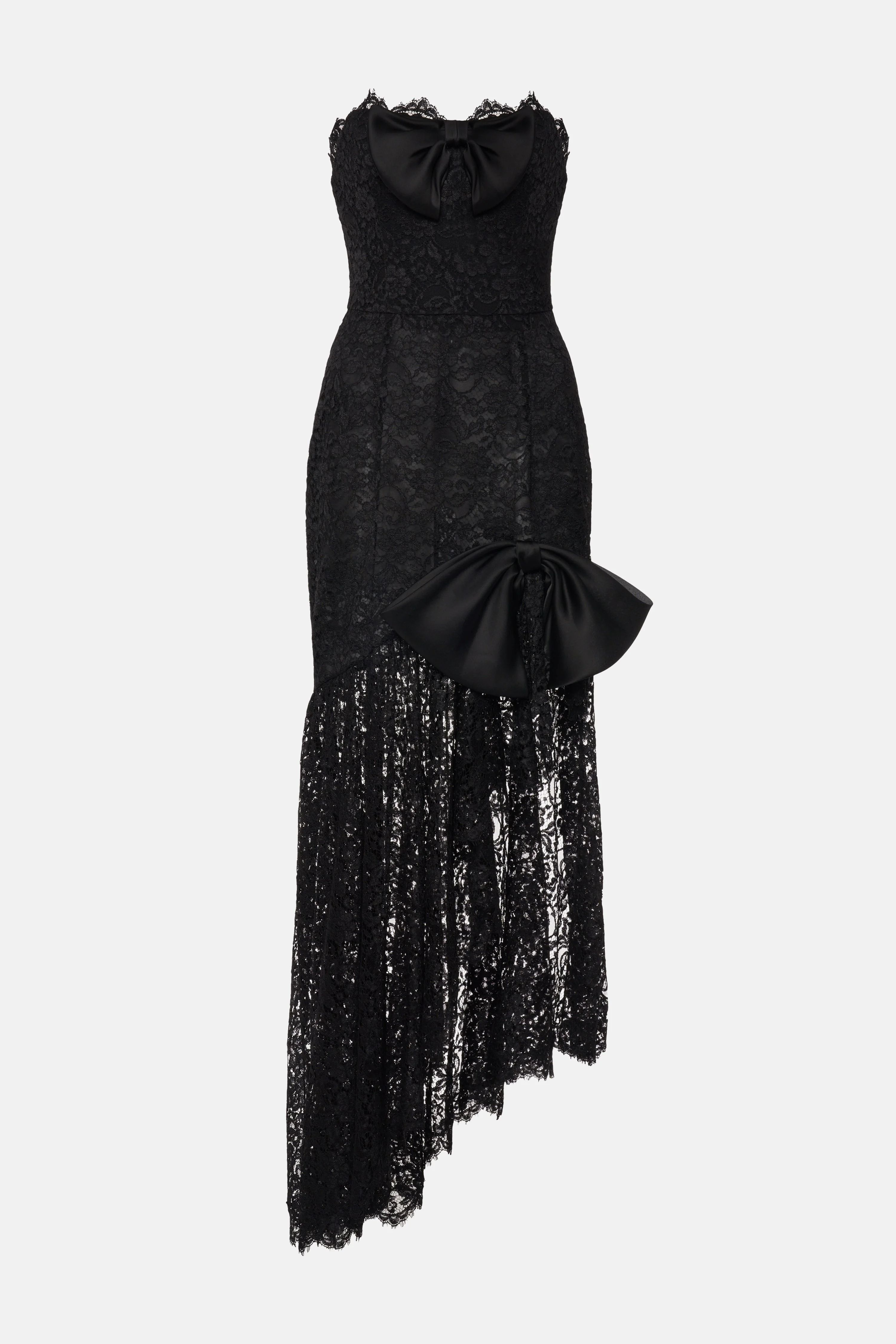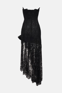 Lace dress with bustier and bows Composition 60% polyamide 20% viscose 20% cotton Bows: 100% silk Lining A: 100% silk Lining B: 80% polyamide 20% elastane Colour: black Made in Italy Product code: FABX4201 P4431 0900