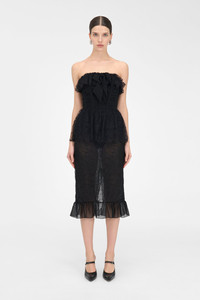 Lace and silk georgette bustier dress Composition 55% cotton 45% polyamide Bow: 100% silk Lining: 78% polyamide 22% elastane Colour: black Made in Italy Product code: FABX4152 P4605 0900