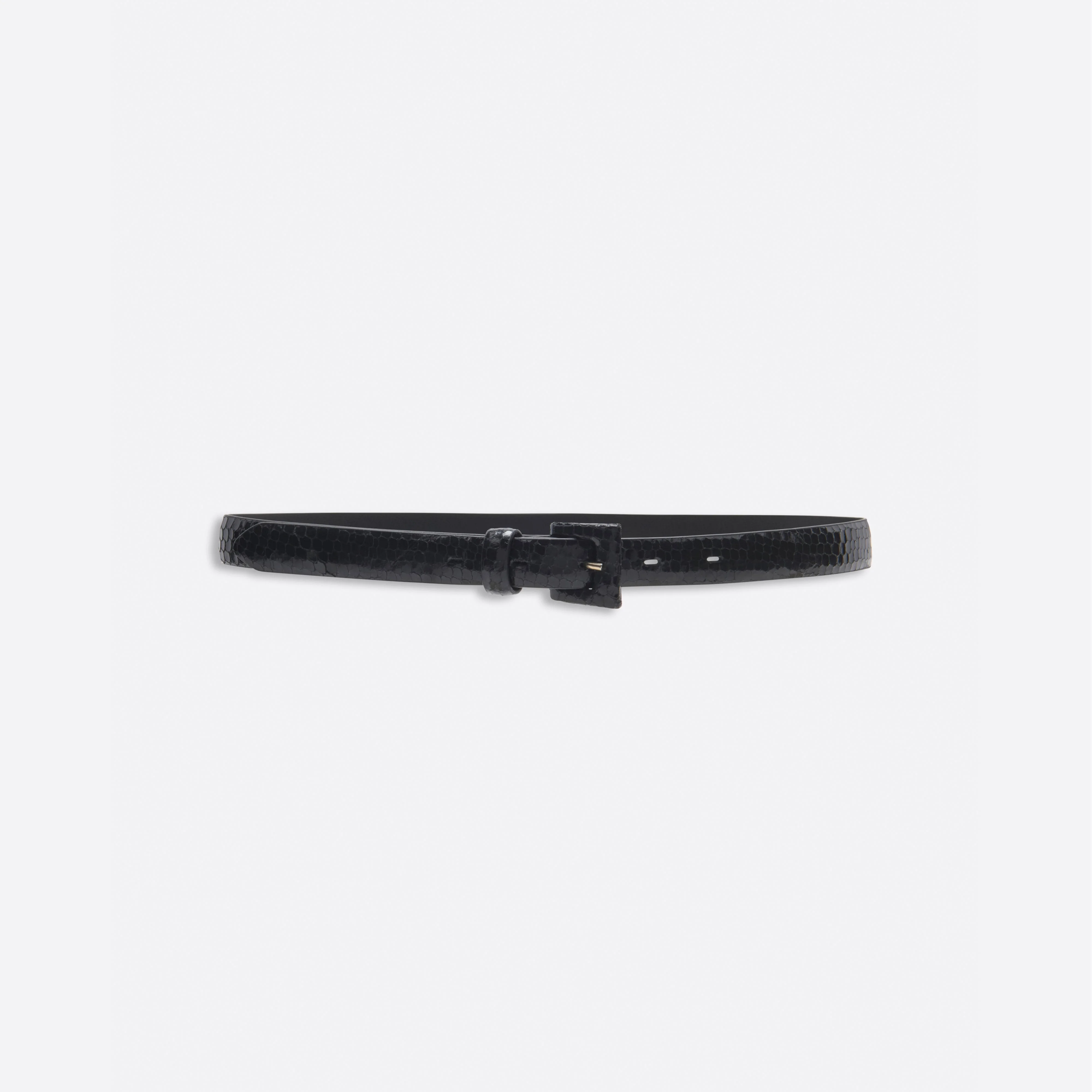 Slim leather belt Materials 100% goatskin Lining: 100% leather Buckle outer: 100% goatskin Buckle inner: 100% metal Colour: black Made in Italy Product code: FABA3308 L0002 0926