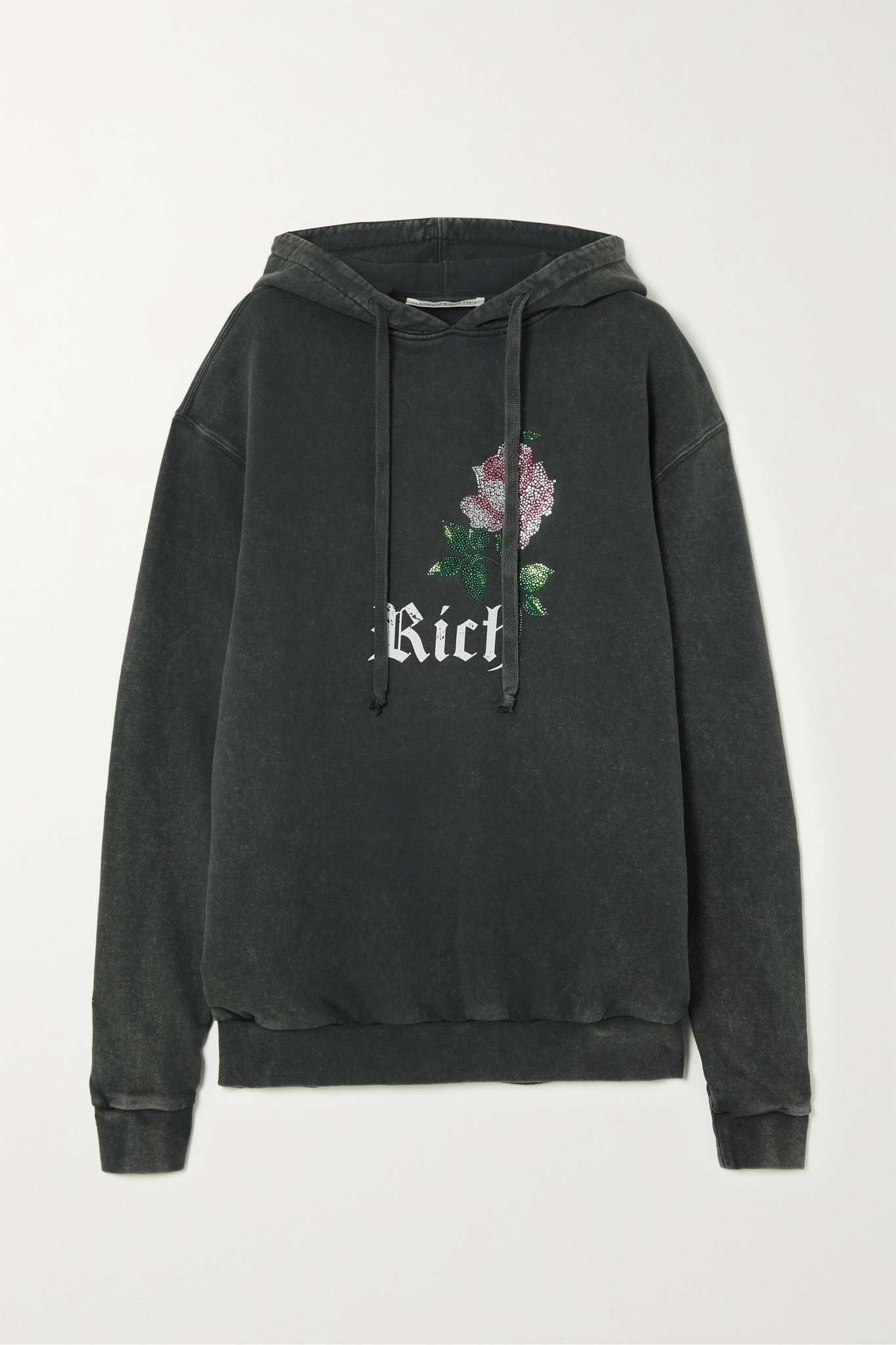 EDITORS'NOTES The rose petals printed on Alessandra Rich's 'Let's Kiss' hoodie are embellished with shimmering crystals. Inspired by Y2K streetwear, the slightly loose shape is cut from cotton-jersey and faded for an authentic vintage feel. Take your styling cues from the Spring '23 runway, where it was paired with wide-leg jeans. SIZE & FIT - Fits true to size, take your normal size - Designed for a slightly loose fit - Mid-weight, slightly stretchy fabric - Model is 180cm/ 5’11” and is wearing a size XSmall DETAILS & CARE - Dark-gray cotton-jersey - Slips on - 100% cotton - Dry clean