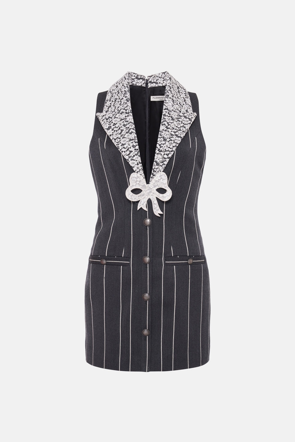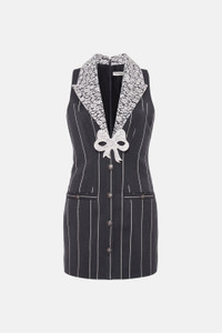LIGHT WOOL PINSTRIPE SLEEVELESS MINI DRESS DETAILS (A)80%WV 20%PL (B)53%PA 47%VI LINING: (A)100%VI EMBROIDERY: (A)53%PA 47%VI (B)100%SE Style reference : FABX3612 F4246 1199 GREY-WHITE
