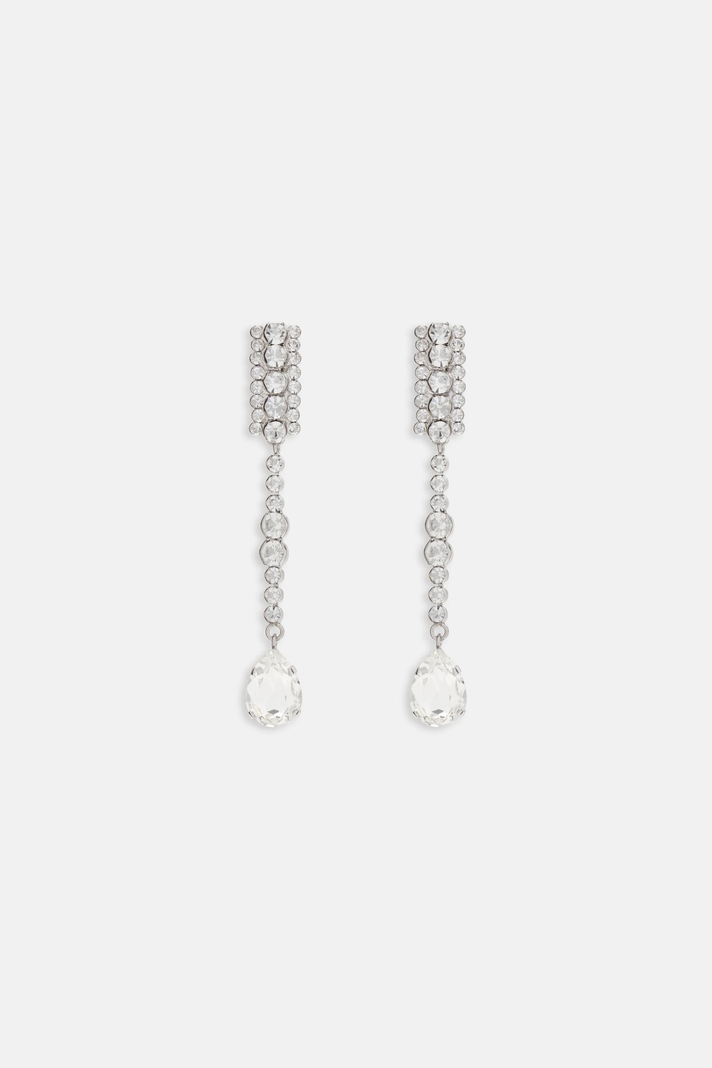 Crystal long earrings with pendant drop Materials 10% hypoallergenic toned brass 90% glass Colour: cry-silver Made in Italy Product code: FABA3292 J0004 0001