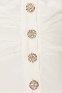 Details - Self: 100% silk - Lining: 100% polyester - Contrast Fabric 1: 70% cotton, 30% polyamide - Contrast Fabric 2: 100% polyamide - Dry clean only - Front crystal embellished button closure - Scalloped lace neckline trim - Padded shoulders - Cropped fit - Lightweight sateen fabric - Item not sold as a set - Made in Italy - Our Style No. ARIF-WS100 - Manufacturer Style No. FABX4284