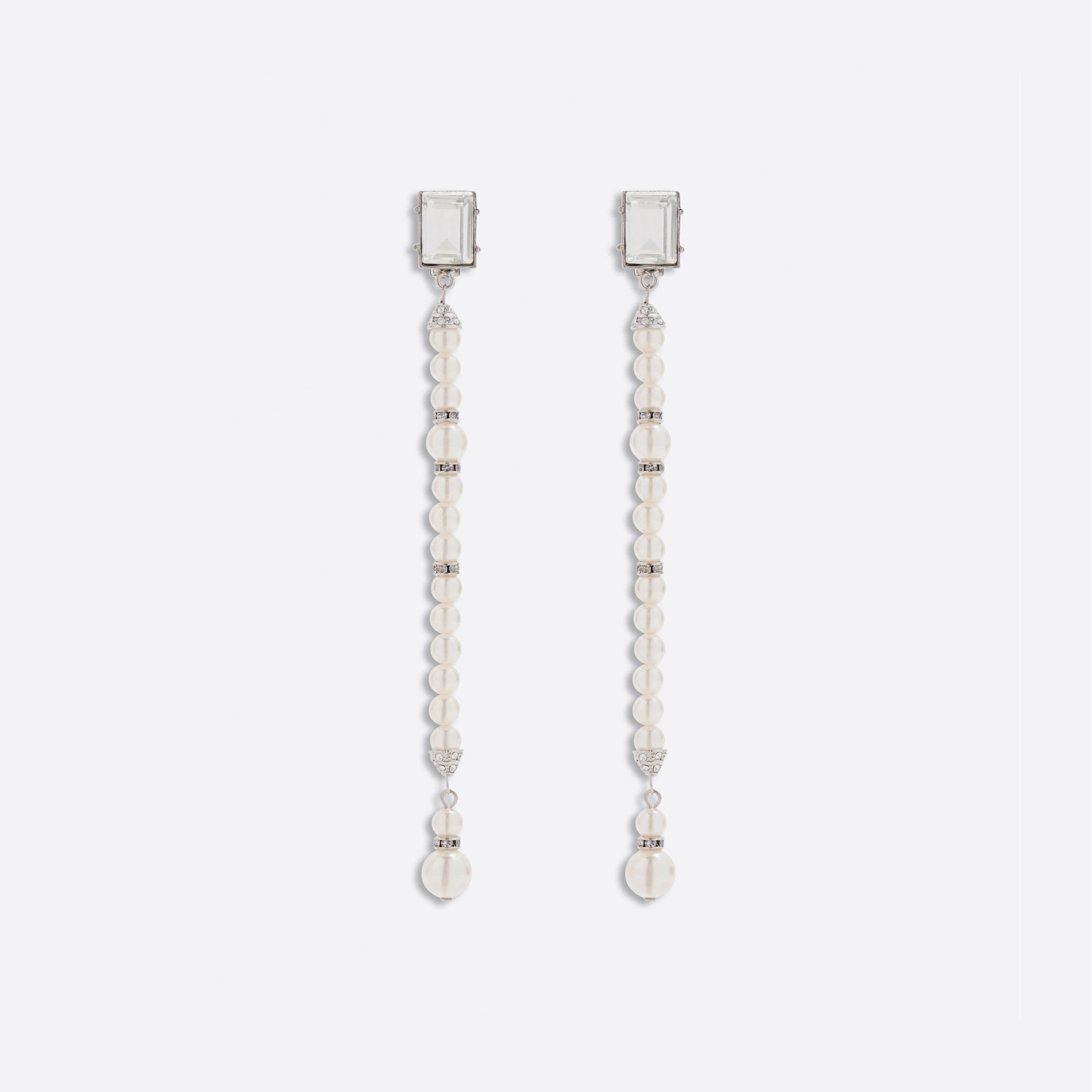 Pearl long earrings with crystal Materials 30% hypoallergenic toned brass 70% glass Pearl: 100% glass Colour: pearl-silver Made in Italy Product code: FABA3334 J0034 0001