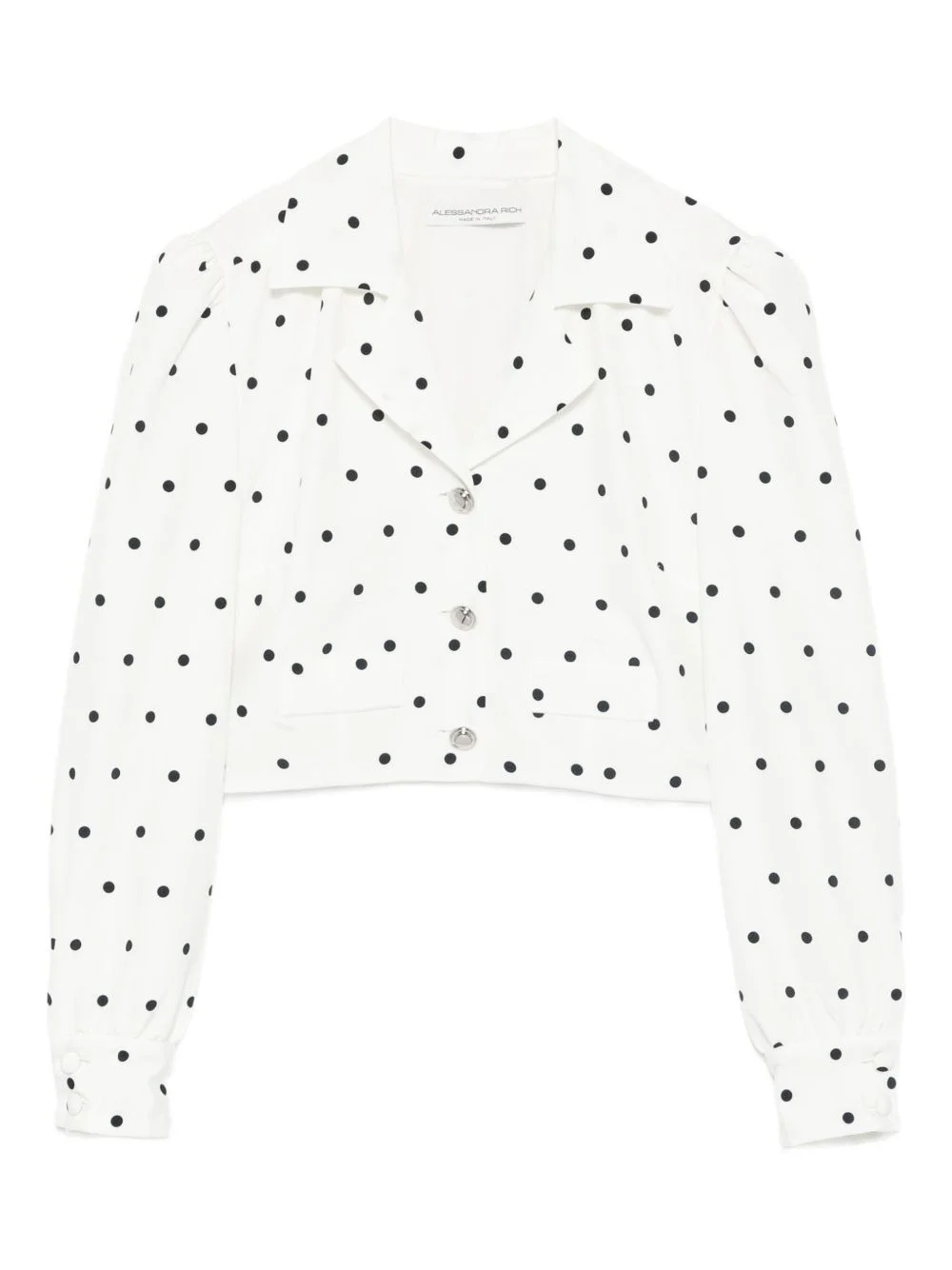 polka-dot buttoned jacket Highlights - White - Polka dot pattern - Button fastening - Long sleeves Made in Italy Composition Outer: Silk 100% Lining: Polyester 100% SIZE & FIT Model measurements Height 5 ft 10 in(1.78 m) Bust/Chest 31.49 in(80 cm) Hips 37 in(94 cm) Waist 23.62 in(60 cm) Washing instructions Dry Clean Only