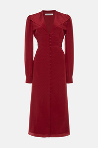 Polka dot print silk dress with collar and buttons Composition 100% silk Lining: 100% cupro Colour: bordeaux-black Made in Italy Product code: FABX4010 F4508 1981