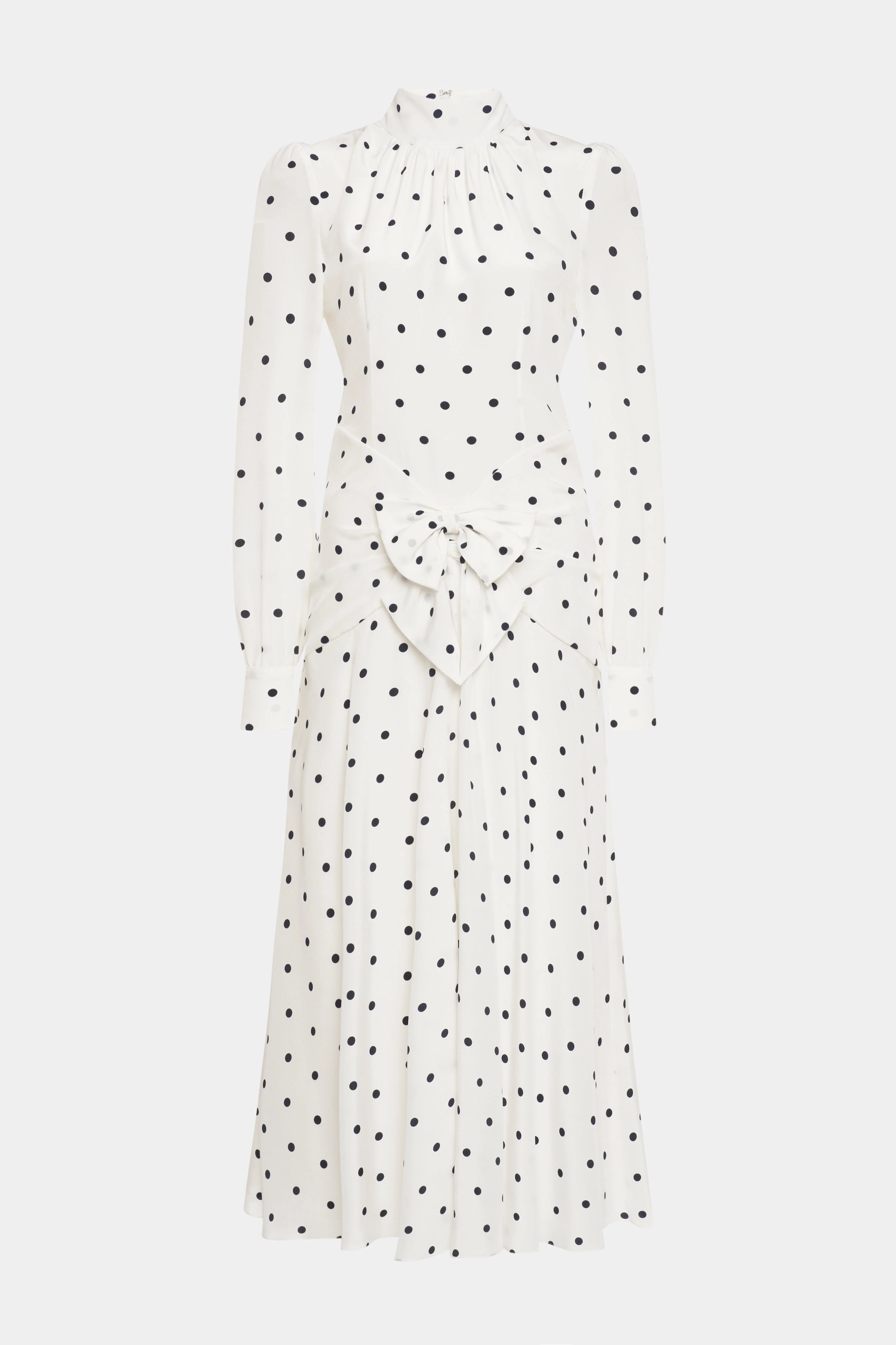 Polka dot print silk high neck dress Composition 100% silk Lining: 100% polyester Colour: white-navy blue Made in Italy Product code: FABX4126 F4655 0822