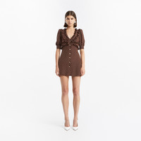 Polka dot silk mini dress with jewel buttons Composition 100% silk Lining: 100% polyester Lining 2: 100% polyamide Colour: brown-white Made in Italy Product code: FABX4297 F4686 1659
